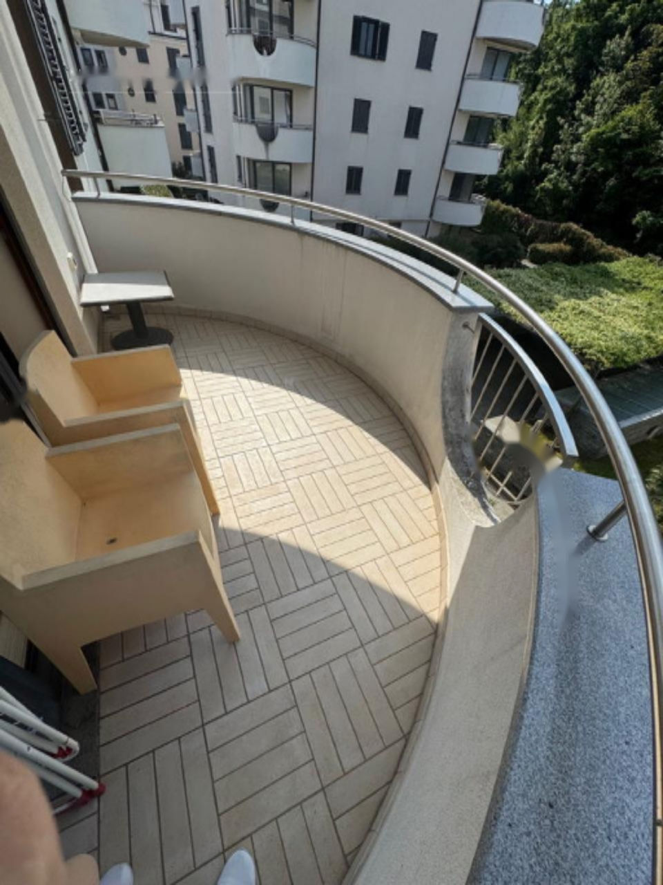 Объект характеризуется комфортным и продуманным расположением: просторная прихожая, большая ванная комната с туалетом, просторная гардеробная, одна спальня и большой открытый план с кухней, гостиной и столовой. Все комнаты имеют выход на террасу, откуда открывается великолепный вид на зеленый парк.