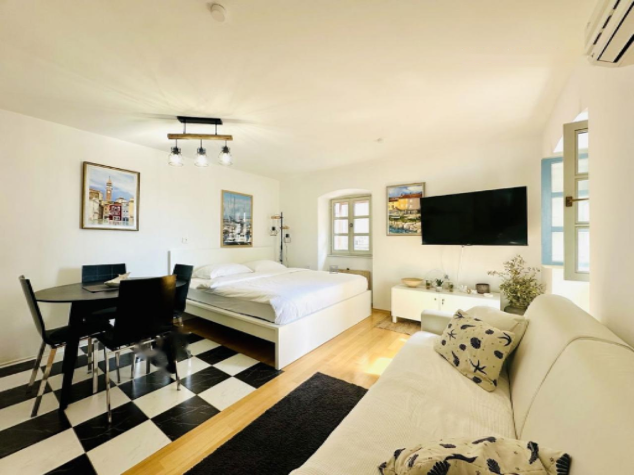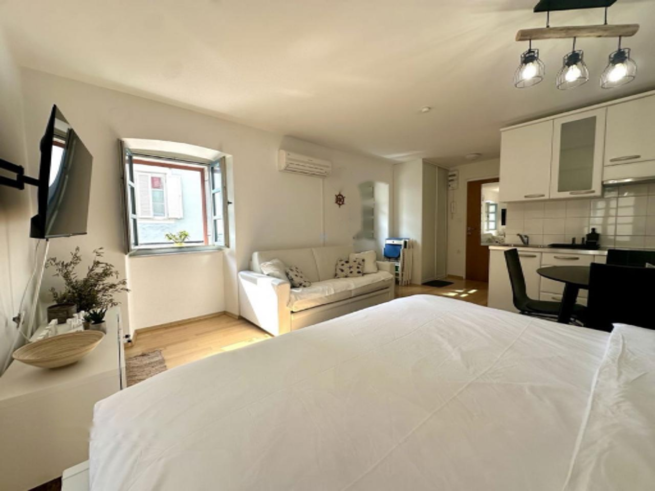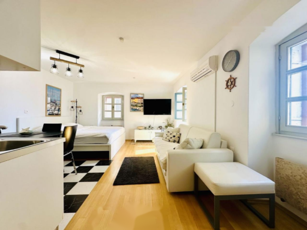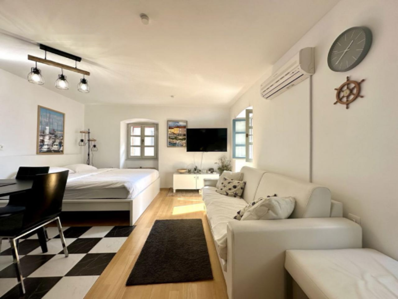Квартира отличается прекрасными видами на море и старинное городское портовое угло, что делают её особенно светлой и уютной. Имеет три больших окна, а непосредственная близость к морю и старым городским улочкам добавляет её особую притягательность. Возле квартиры находится красивое каменное лестнице, ведущее к входу.