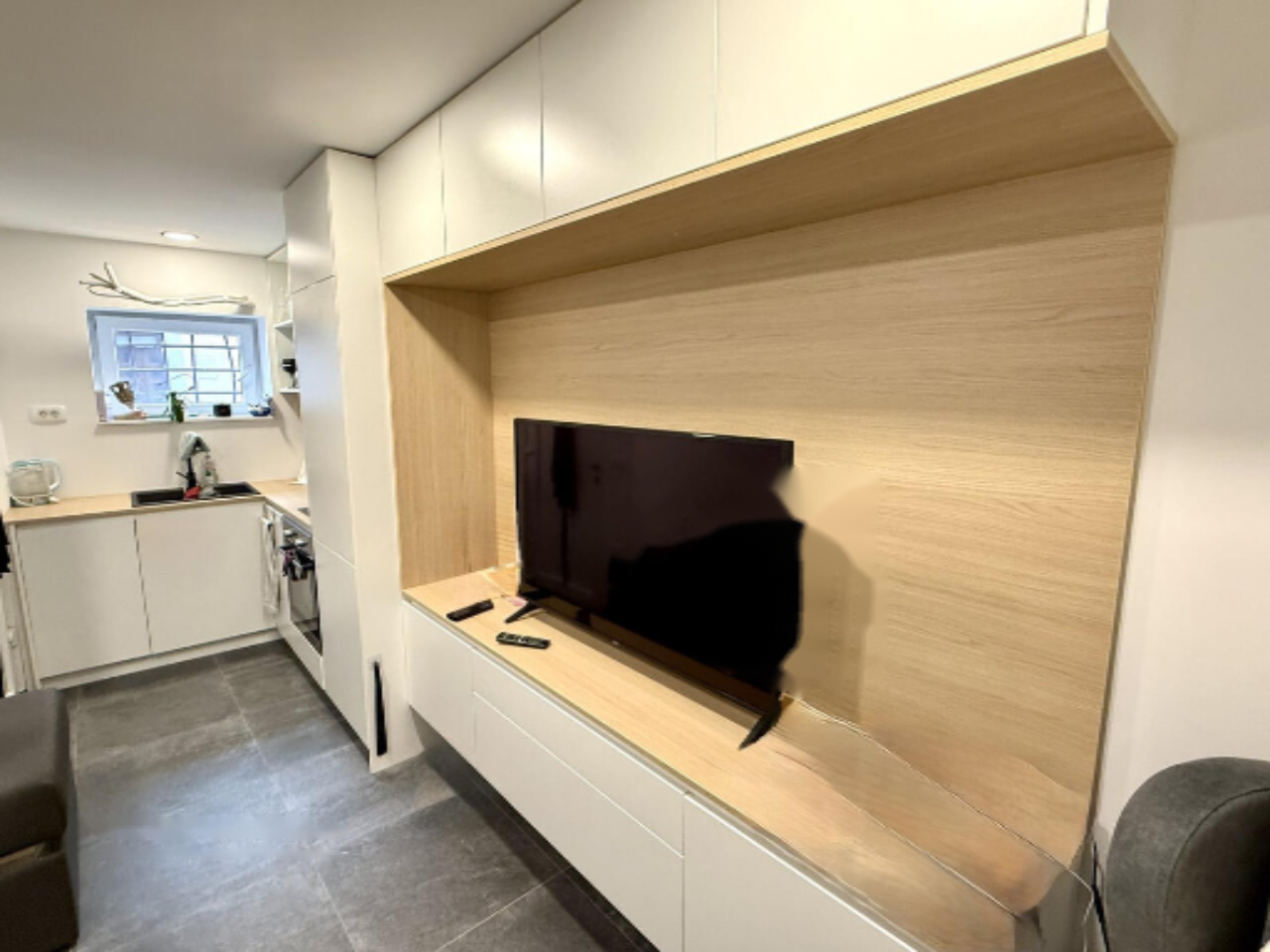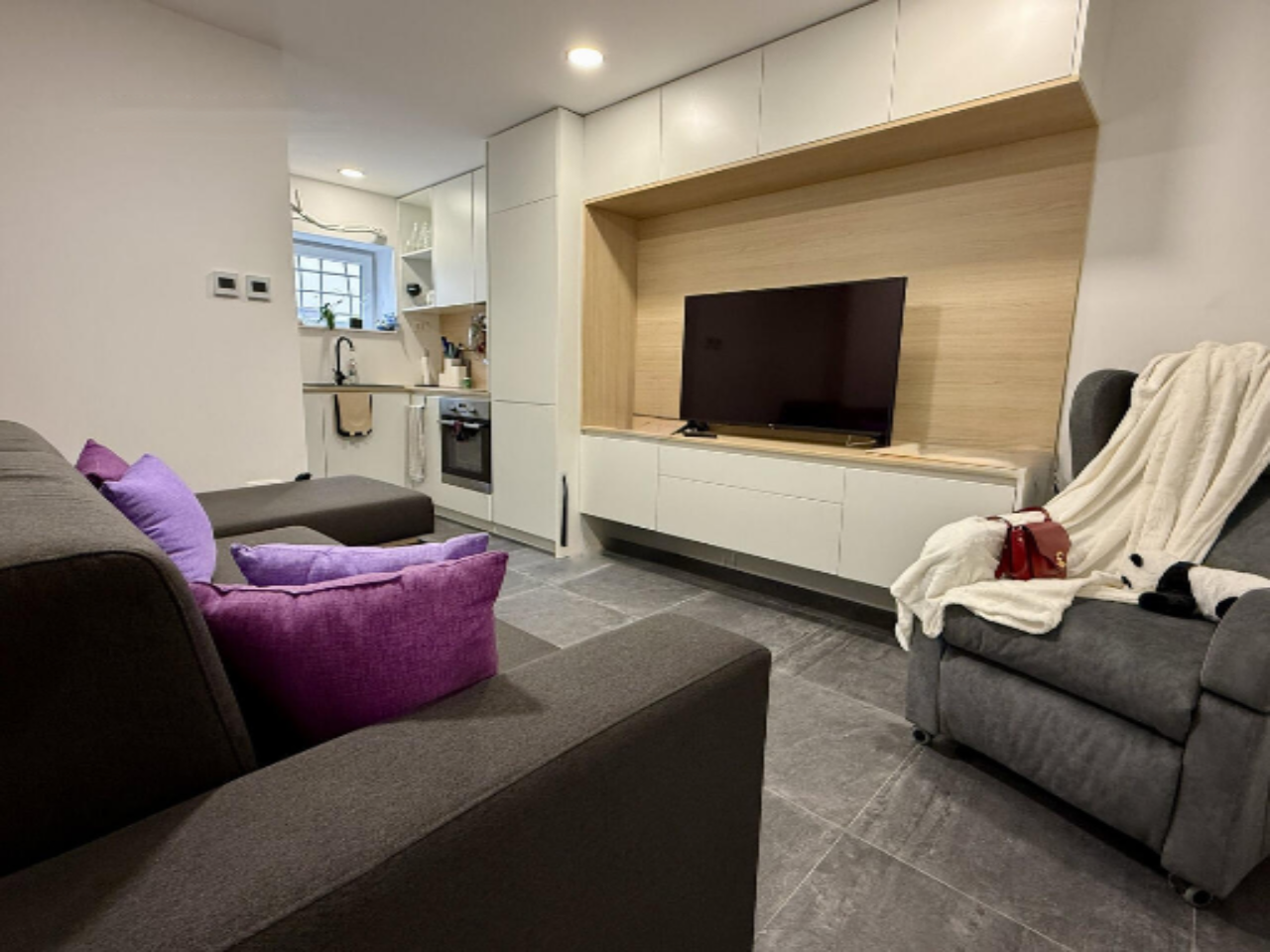 ️ Полностью меблированная и готова к проживанию, студия предлагается со всей необходимой мебелью и бытовой техникой: варочная панель с духовкой, вытяжка, холодильник, посудомоечная машина, встроенный гардероб, стиральная машина, телевизионная тумба и раскладная диван-кровать, которая с помощью дистанционного управления складывается в шкаф, максимально освобождая полезную площадку.