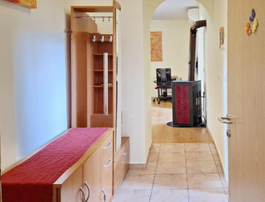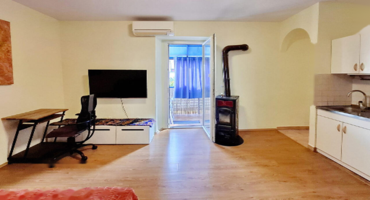 Отопление осуществляется с помощью кондиционера и печи на дровах. Квартира продается с мебелью.