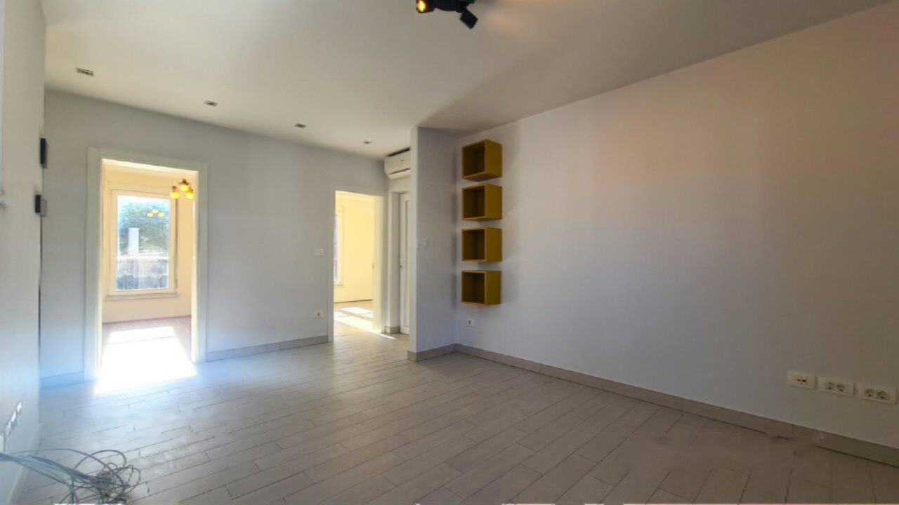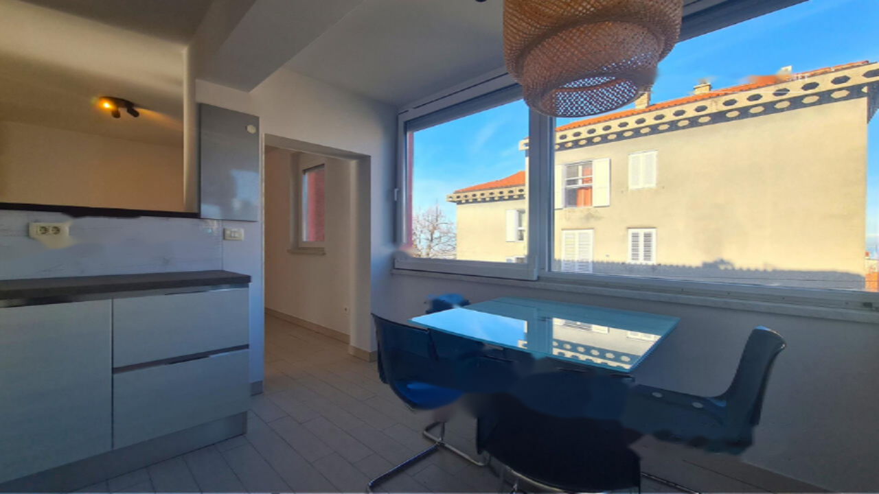 Квартира предлагает комфортное проживание с тремя спальнями, гостиной и обновлённой кухней, оснащённой всеми необходимыми бытовыми приборами, а также ванной комнатой. Панорамное окно на кухне открывает вид на море, добавляя особый шарм. Полная реконструкция квартиры в 2013 году включала замену электропроводки, водопроводных труб и напольных покрытий. Пластиковые окна с рольставнями обеспечивают тепло и тишину. Для дополнительного удобства имеется собственный подвал площадью 3,9 м² и общая кладовая либо велопарковка для многоцелевого использования.