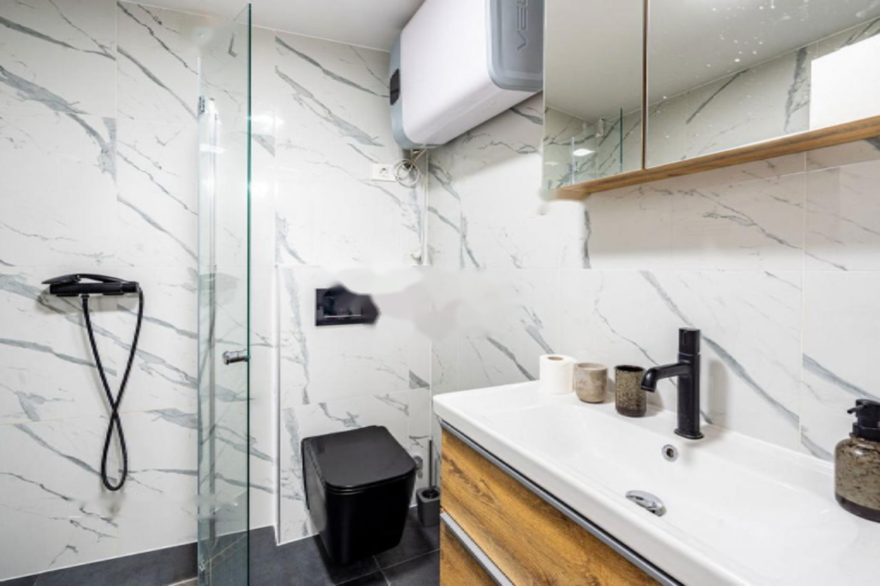 Вся необходимая инфраструктура находится вблизи — магазины, школы, остановки общественного транспорта. Парковка возможна на центральной городской площади или в соседнем общественном гараже. До городской пляжа можно дойти за 5 минут. Доступ с автомобилем также возможен.