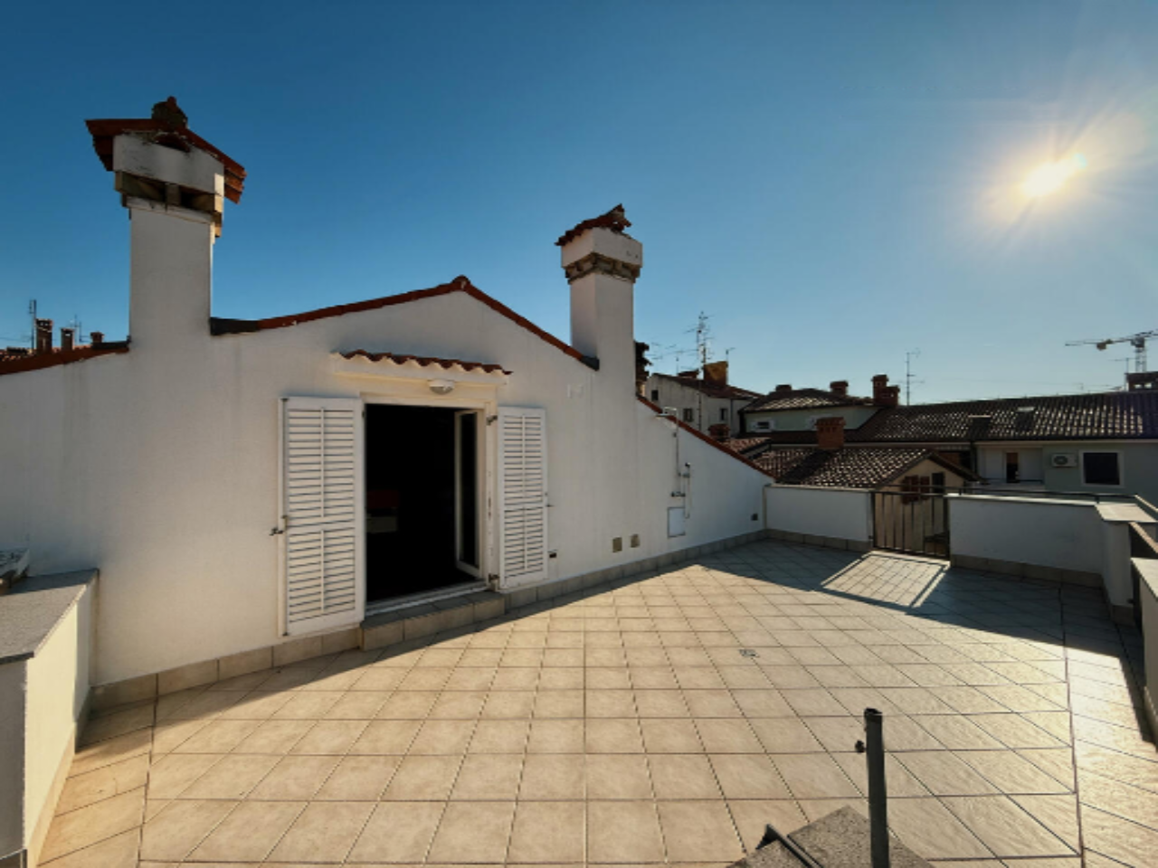 Изюминкой данного объекта является просторная крытая терраса с великолепным видом на море и крыши старого центра города. Внутреннее пространство целиком отражает шарм старинной архитектуры: высокие потолки и светлые помещения. Верхний этаж занимает открытая гостиная зона с выходом на террасу, оборудованную душем.