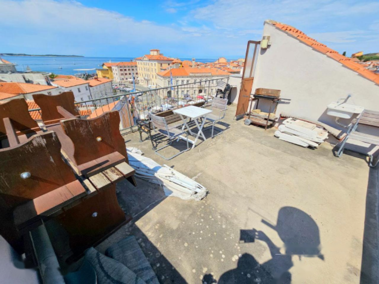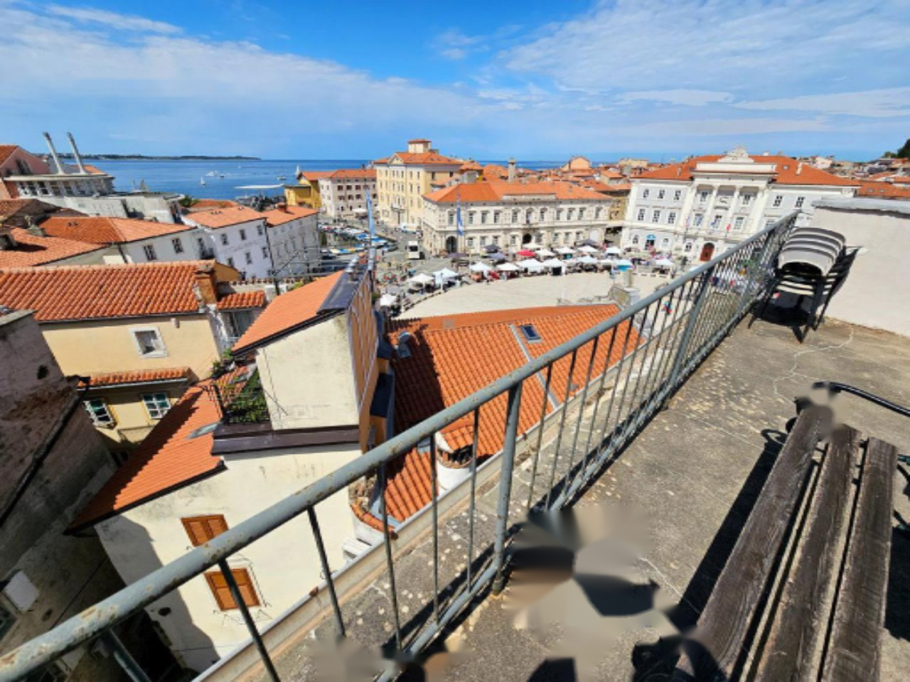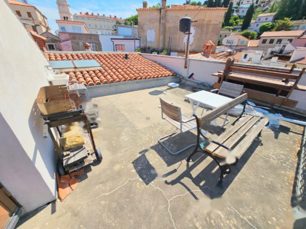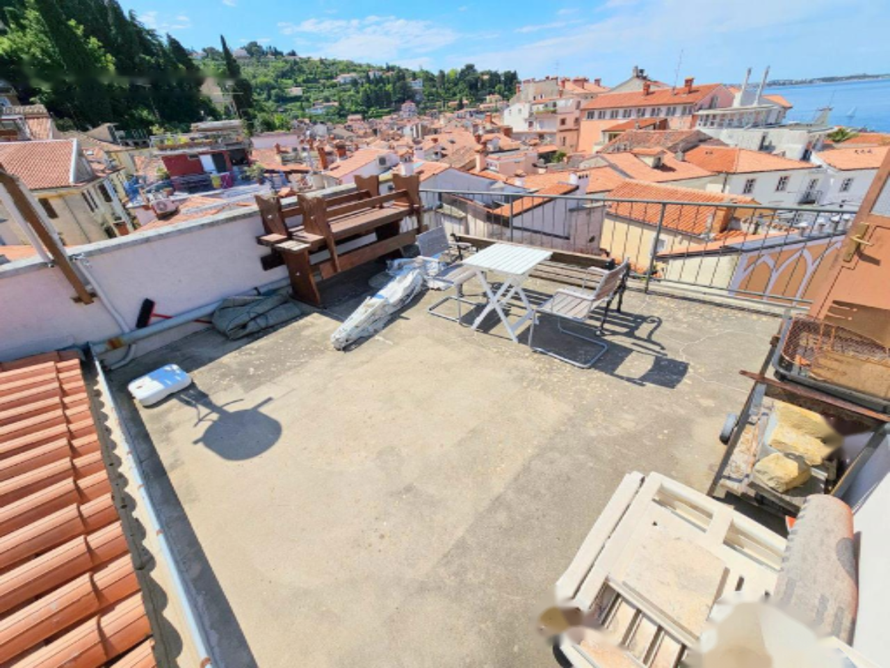 Особенностью данной недвижимости является просторная терраса площадью 20 м², расположенная на шестом этаже, которая оборудована зоной для барбекю, водой и электричеством. Терраса достаточно вместительна для солнечных ванн и приема более 10 гостей одновременно. Из окон квартиры открывается потрясающий вид на море, площадь Тартини, крепостную стену и городскую церковь на вершине Пирана.