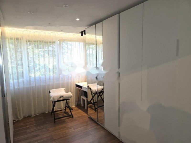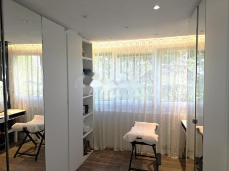 Внутренняя планировка включает вход, прихожую, просторную открытую гостиную с выходом на балкон и обеденной зоной, открытую кухню, коридор, ведущий в спальни. В квартире три спальни, одна из которых используется как гардеробная и детская комната, а также хозяйственная комната и две ванные комнаты. Есть отдельный туалет и балкон для расслабления на свежем воздухе.