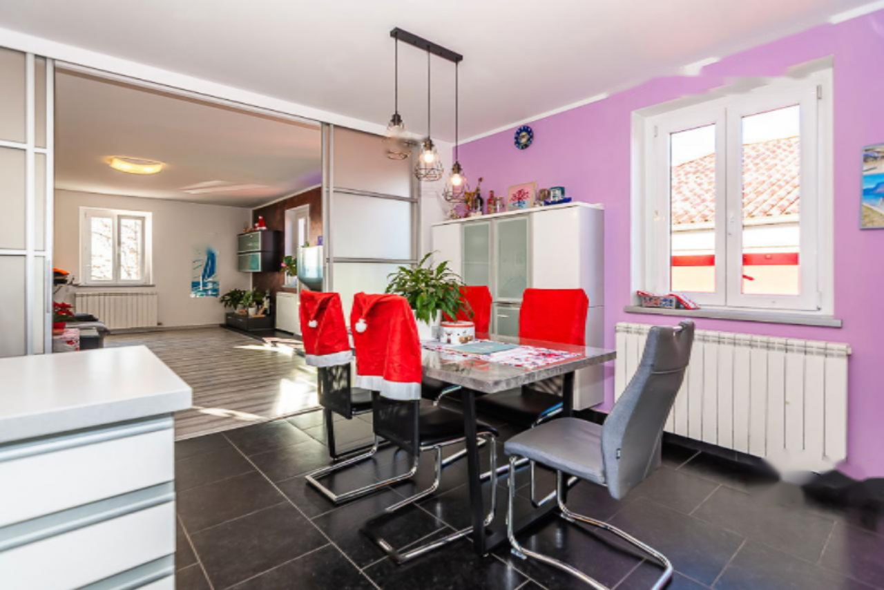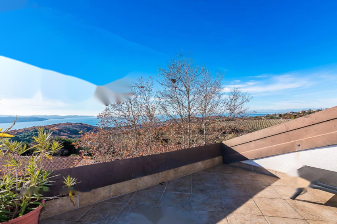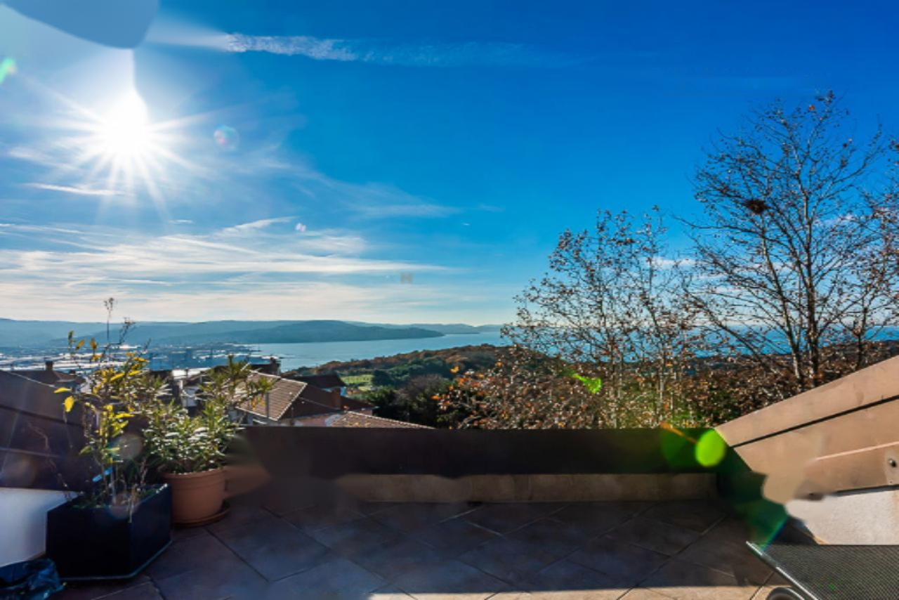 Предлагается на продажу просторное двухуровневое жильё с восхитительным видом на море, расположенное в живописной местности Хрватини, недалеко от Копера. Объект представляет собой продуманное и уютное пространство для комфортного проживания. Квартира расположена на втором этаже и включает в себя три спальни, светлую гостиную зону, полноценную мансарду и террасу площадью 21 м².