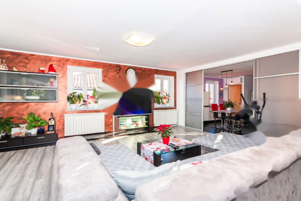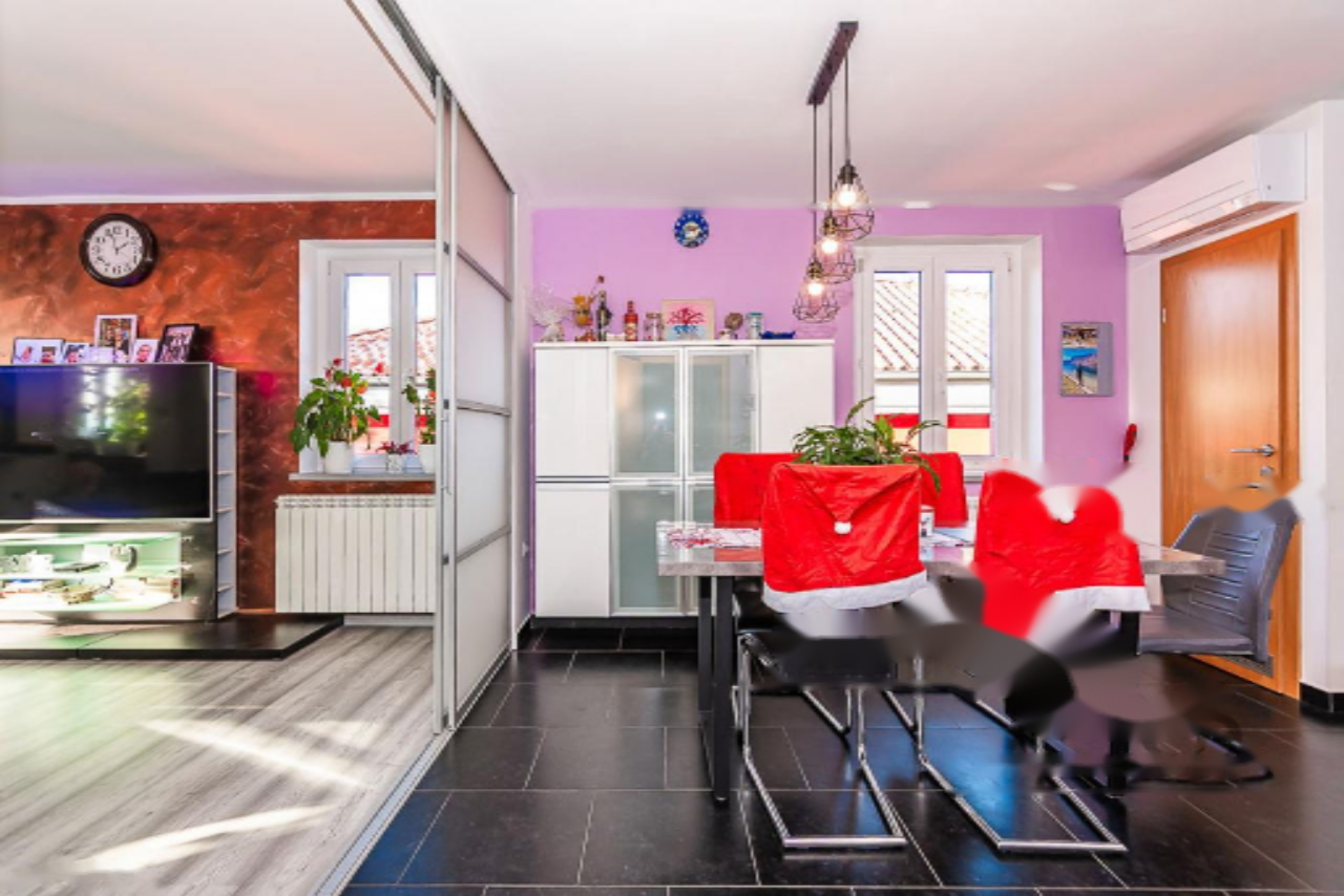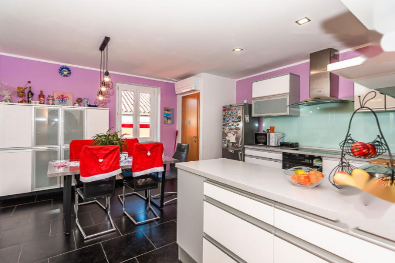 Предлагается на продажу просторное двухуровневое жильё с восхитительным видом на море, расположенное в живописной местности Хрватини, недалеко от Копера. Объект представляет собой продуманное и уютное пространство для комфортного проживания. Квартира расположена на втором этаже и включает в себя три спальни, светлую гостиную зону, полноценную мансарду и террасу площадью 21 м².