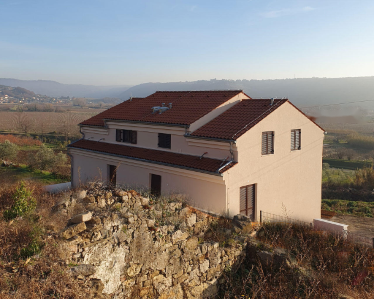 Живописное местоположение отличает этот объект, предоставляющий возможность насладиться житейским спокойствием, открывающимся видом на виноградники и оливковые рощи.