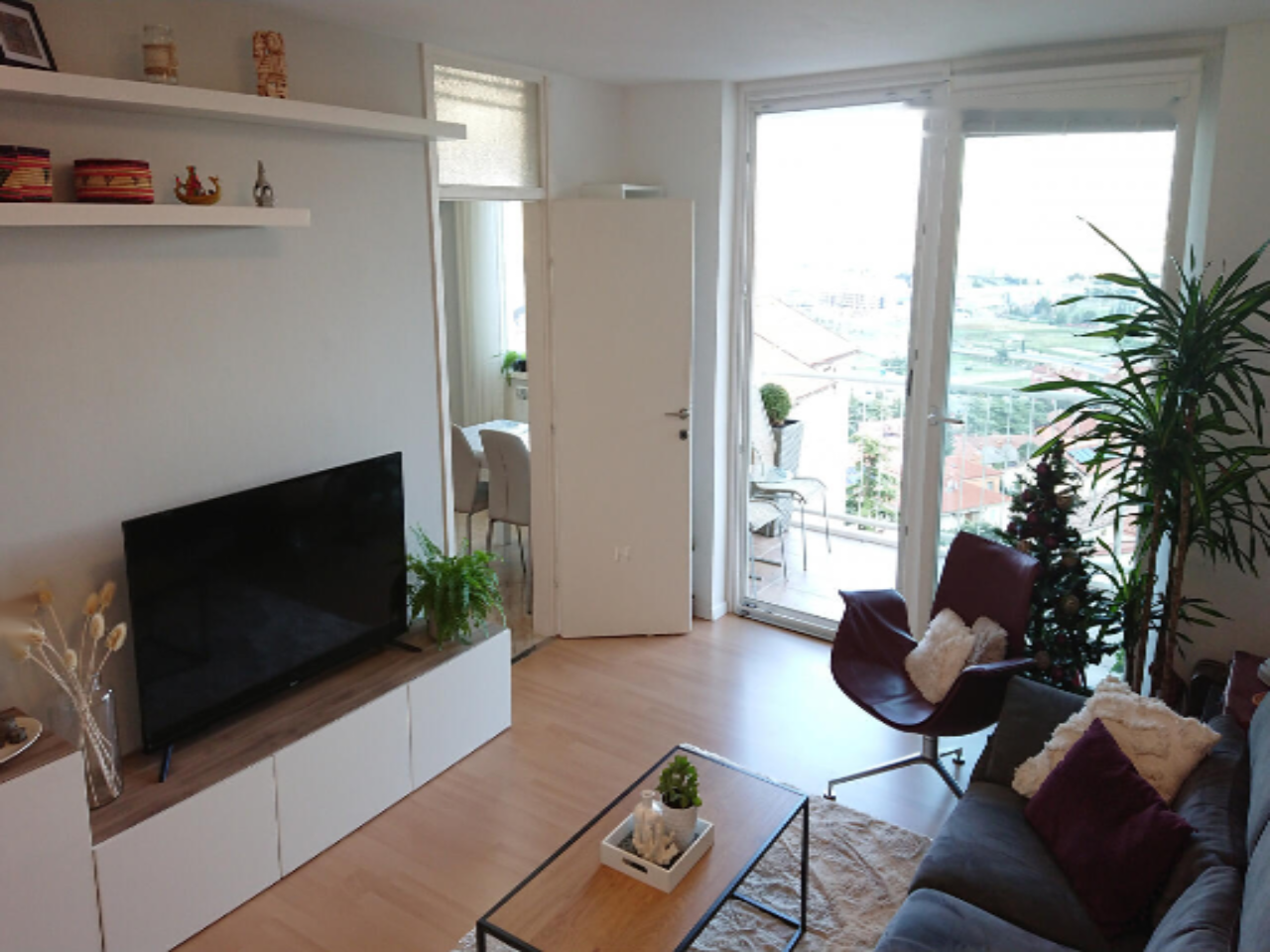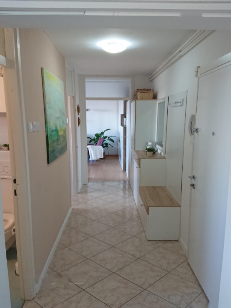 Из просторного коридора вы можете попасть в каждую из комнат: кухню, маленькую комнату, спальню, ванную и большую гостиную с выходом на балкон. Все комнаты оборудованы окнами, включая ванную, что создает атмосферу света и свежести. Просторный балкон, идеальное место для наслаждения живописными видами на город и море.