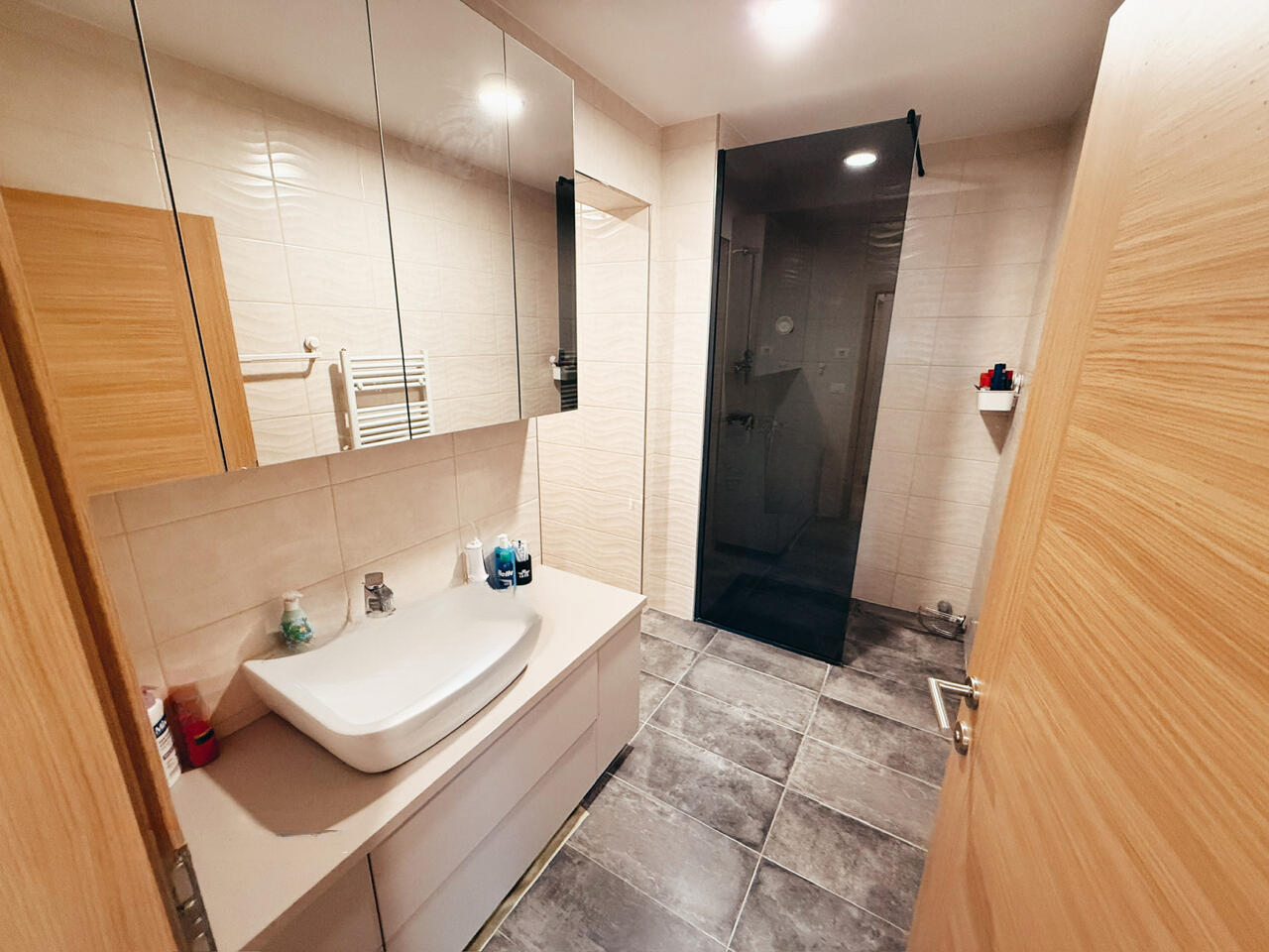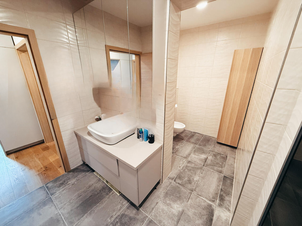 Квартира оснащена современными технологиями, включая напольное отопление с тепловым насосом, кондиционер и энергоэффективную систему отопления. Полностью укомплектованная мебель, изготовленная на заказ, делает квартиру готовой к заселению без дополнительных вложений. Важным преимуществом является наличие двух собственных парковочных мест, что редкость для центральной части Копера.