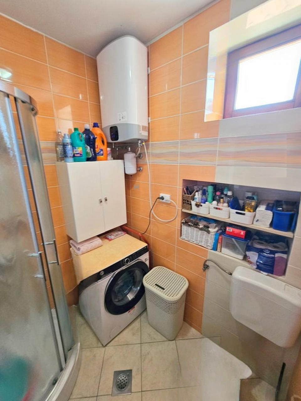 Квартира включает в себя два просторных спальни, удобный коридор, светлую и функциональную ванную комнату с окном, а также огромную открытую гостиную, объединённую с кухней и столовой. Терраса, расположенная на шестом этаже, площадью 20 м², оснащена грилем, водопроводом и электрикой, и подходит для отдыха компаний до десяти человек. Также в распоряжении есть собственный подвал в 15 м².