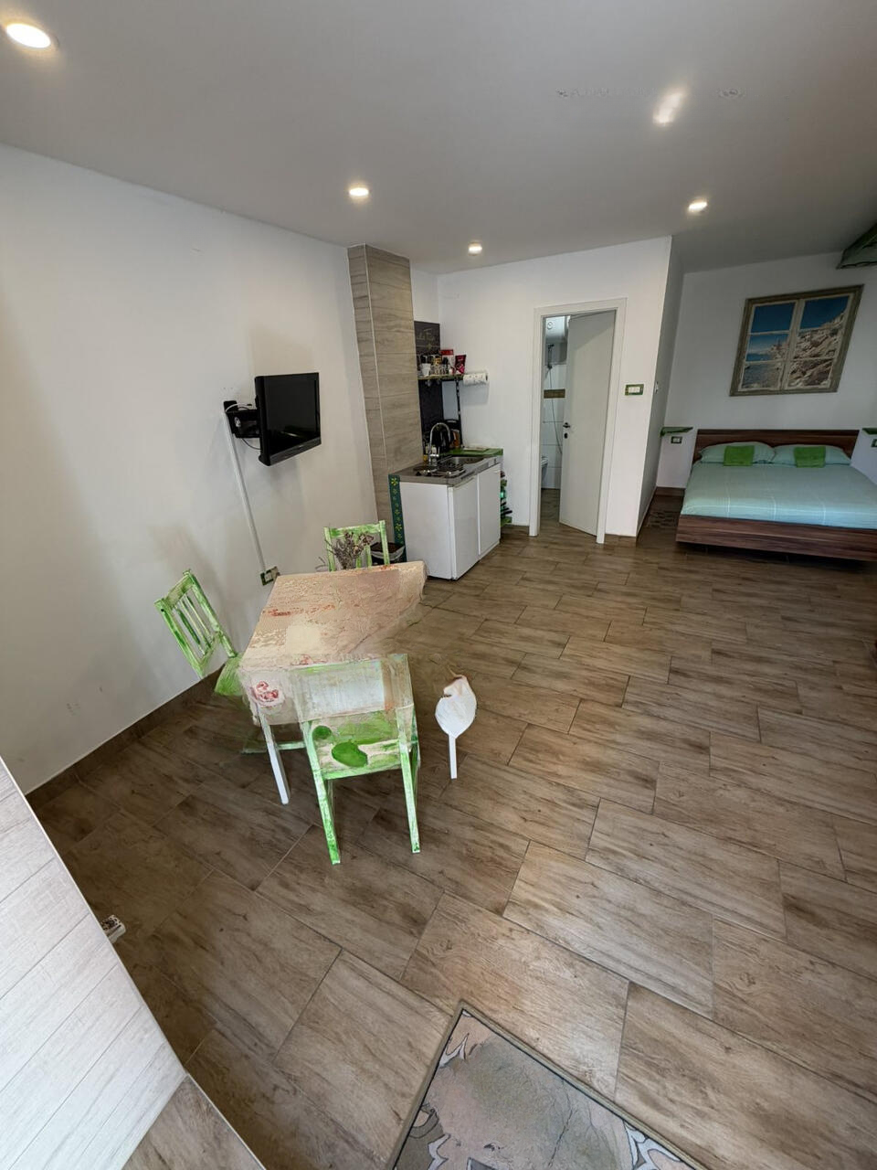 Студия продаётся меблированной и включает в себя универсальное пространство с гостиной, кухней, обеденной зоной и спальным местом. Также имеется ванная комната с туалетом. Присутствуют современные коммуникации: оптоволоконный интернет и система климат-контроля для отопления и охлаждения ☁🌡.