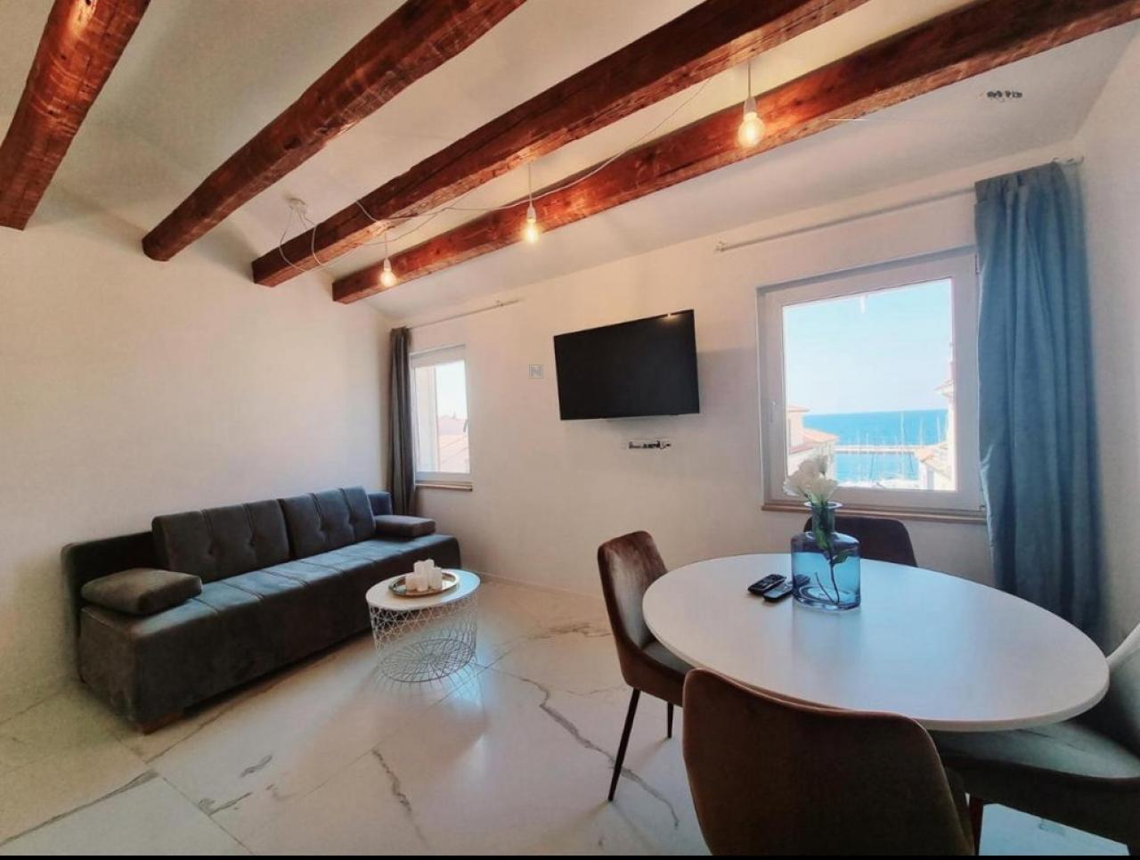 Имущество дополнительно выделяется прекрасным видом на море и порт, а также доступом для автомобилей — редкость для центральной части Пирана.