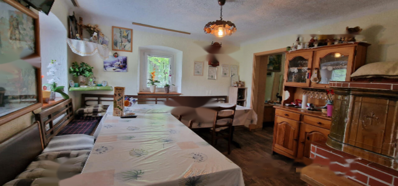 - Жилой дом площадью 276,7 м², построенный в 1890 году и полностью адаптированный в 1990 году. Кухня и столовая были обновлены в 2018 году, окна заменены в 2017 (кроме кухни и ванной). Дом является культурным наследием, имеет традиционную черную кухню и керамическую печь. Планировка: коридор, ванная комната, кухня, столовая с печью и большой крестьянский стол, две спальни и черная кухня с чердаком. Дом полностью подвален.