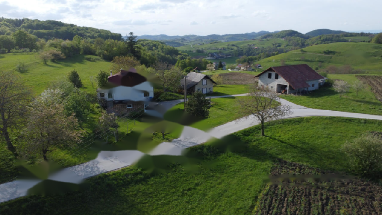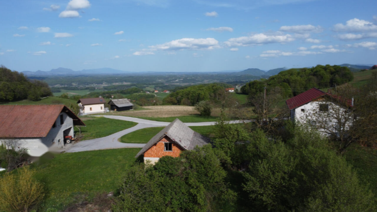 Ферма расположена на красивой солнечной позиции с великолепным видом, что делает её идеальной для тех, кто ищет спокойствие и желает обрабатывать собственные участки земли. На территории имеются жилой дом и хозяйственное строение, а также небольшое здание с подвалом. Жилой дом был построен в 1976 году и частично обновлён в 2015 году (заменены окна и крыша).