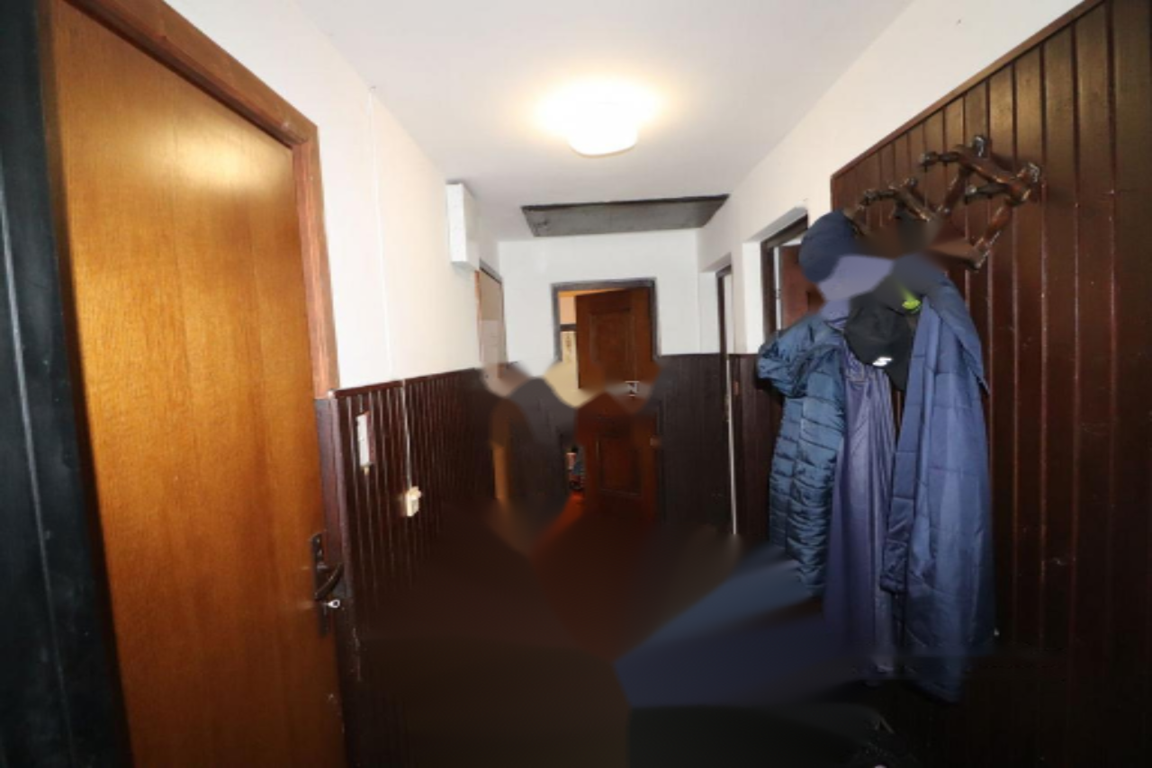 Архитектурно дом выделяется наличием подвального пространства с отдельным входом, где расположена отопительная комната с печью на дровах и котлом на жидком топливе с резервуаром 1500 литров, обеспечивающая обогрев через радиаторы. Также имеется кладовая для продуктов и склад для инструментов. Первый этаж включает в себя стеклянную прихожую, коридор, ванную комнату с душем, отдельный туалет, кухню с обеденной зоной и выходом на балкон, гостиную с балконом и спальню. Использован акцент на качество: свежая кровля из мягкой черепицы установлена в 2025 году, окна с двойными стеклопакетами заменены в 2006 году, изоляция фасада 11 см и дополнительная внутренняя изоляция северной стороны также 11 см.