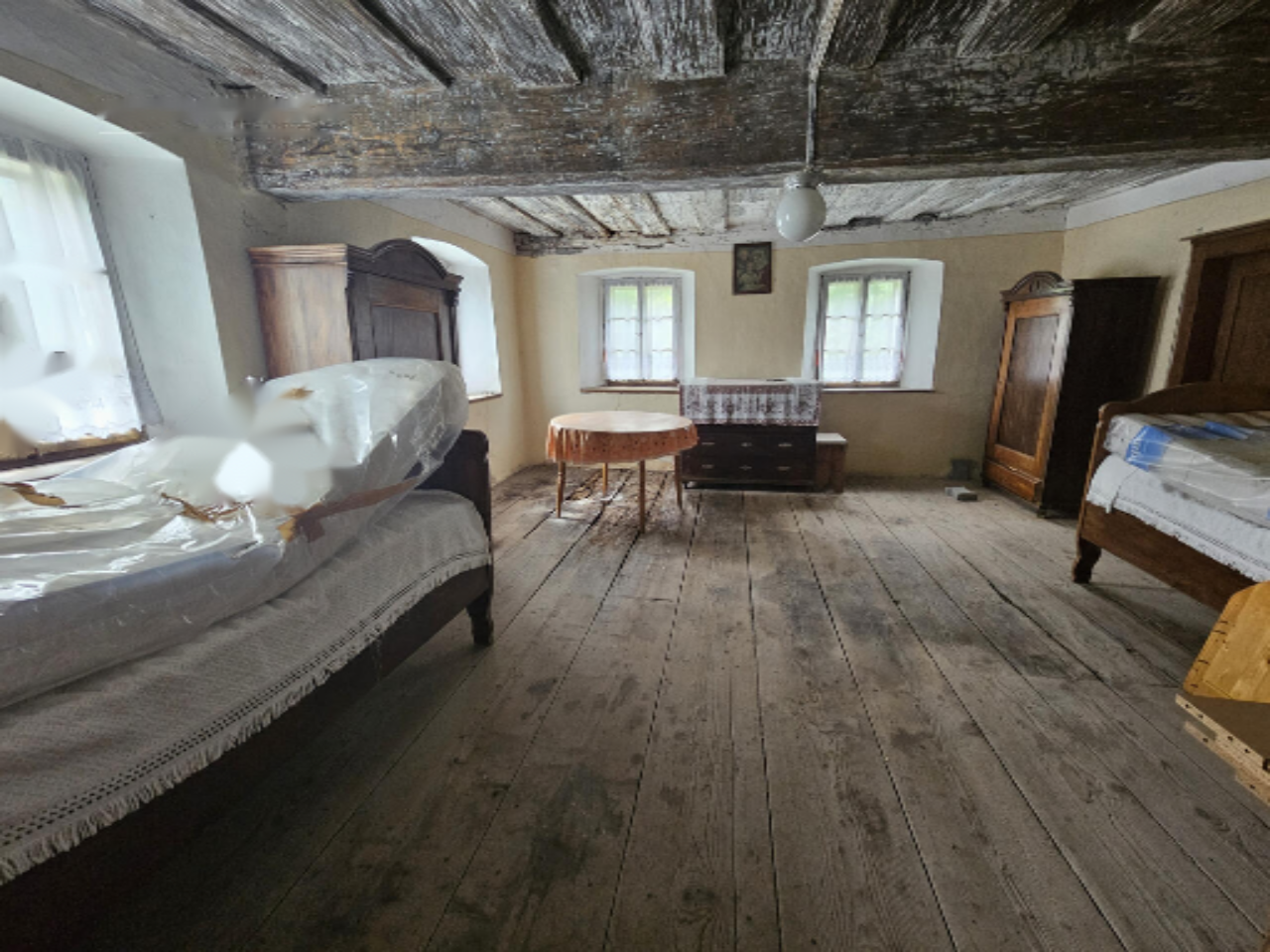 Отопление было организовано с помощью печей. В доме отсутствует ванная комната.