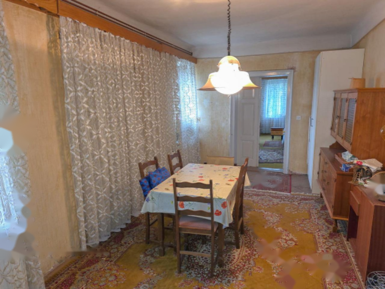 Жилая усадьба выполнена в традиционном прелёшком стиле, присущем богатым крестьянским хозяйствам региона и представляющем значительную архитектурную ценность. Внешний облик дома обновлен: установлена новая крыша и деревянные окна с ставнями. Внутри располагается просторный холл, ванная комната, несколько комнат, кухня и санитарные помещения. Внутри еще можно уловить атмосферу богатирования прошлых лет, что придает недвижимости особый характер. Дом полностью подвален.
