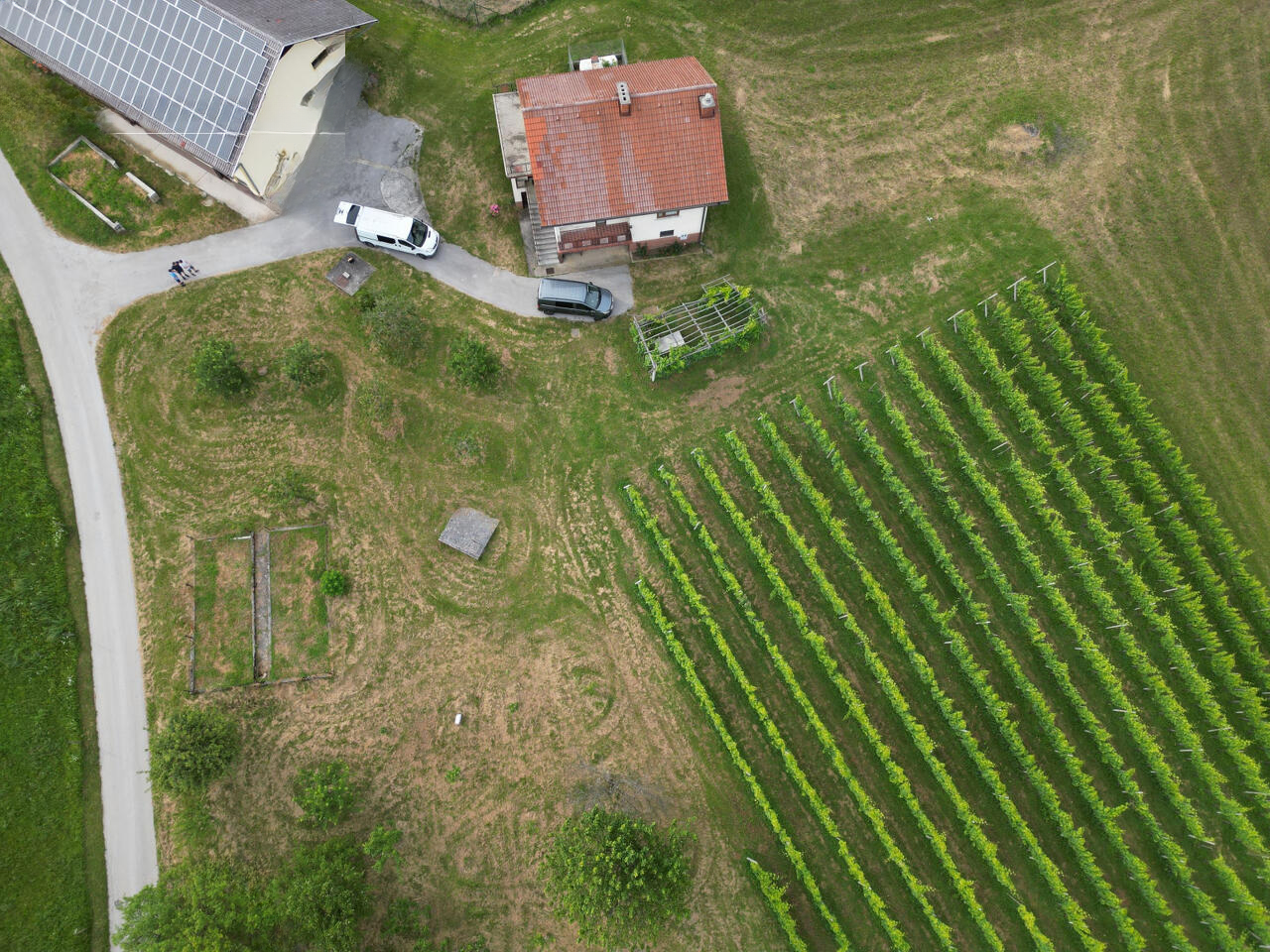 Среди архитектурных особенностей: жилой дом, построенный в 1972 году, размером 12x10 метров с гаражом и двумя этажами. Хозяйственное здание, возведенное в 1982 году, размером 20x12 метров, также имеет два этажа. На территории расположен виноградник примерно на 600 лоз и множество фруктовых деревьев, включая яблони и груши.
