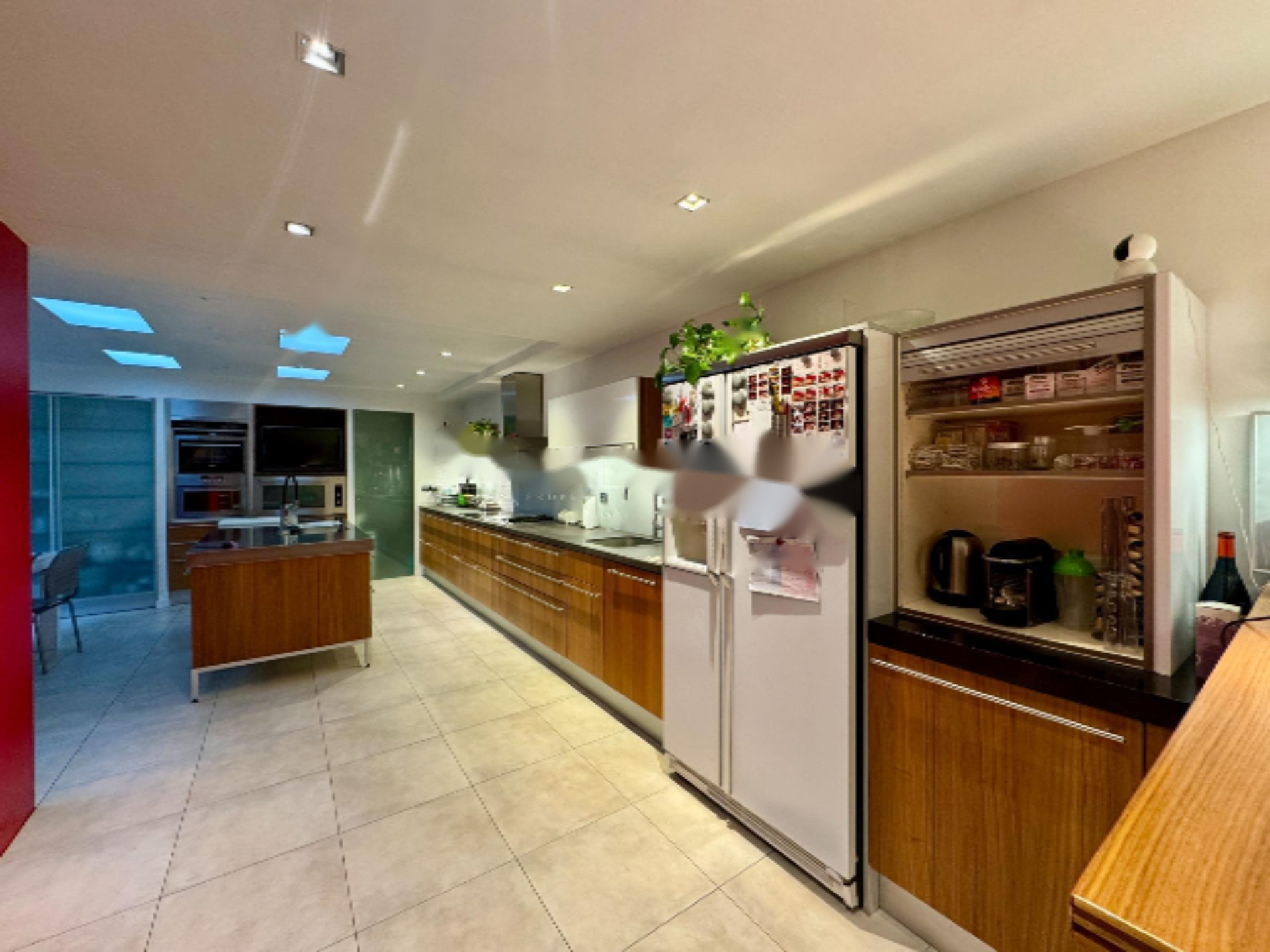 На первом этаже находится дневная зона: просторный холл, великолепная кухня больших размеров с высококачественной бытовой техникой и просторная гостиная-столовая с камином. Как из гостиной, так и из кухни есть выход на террасу/сад, окружающие дом.