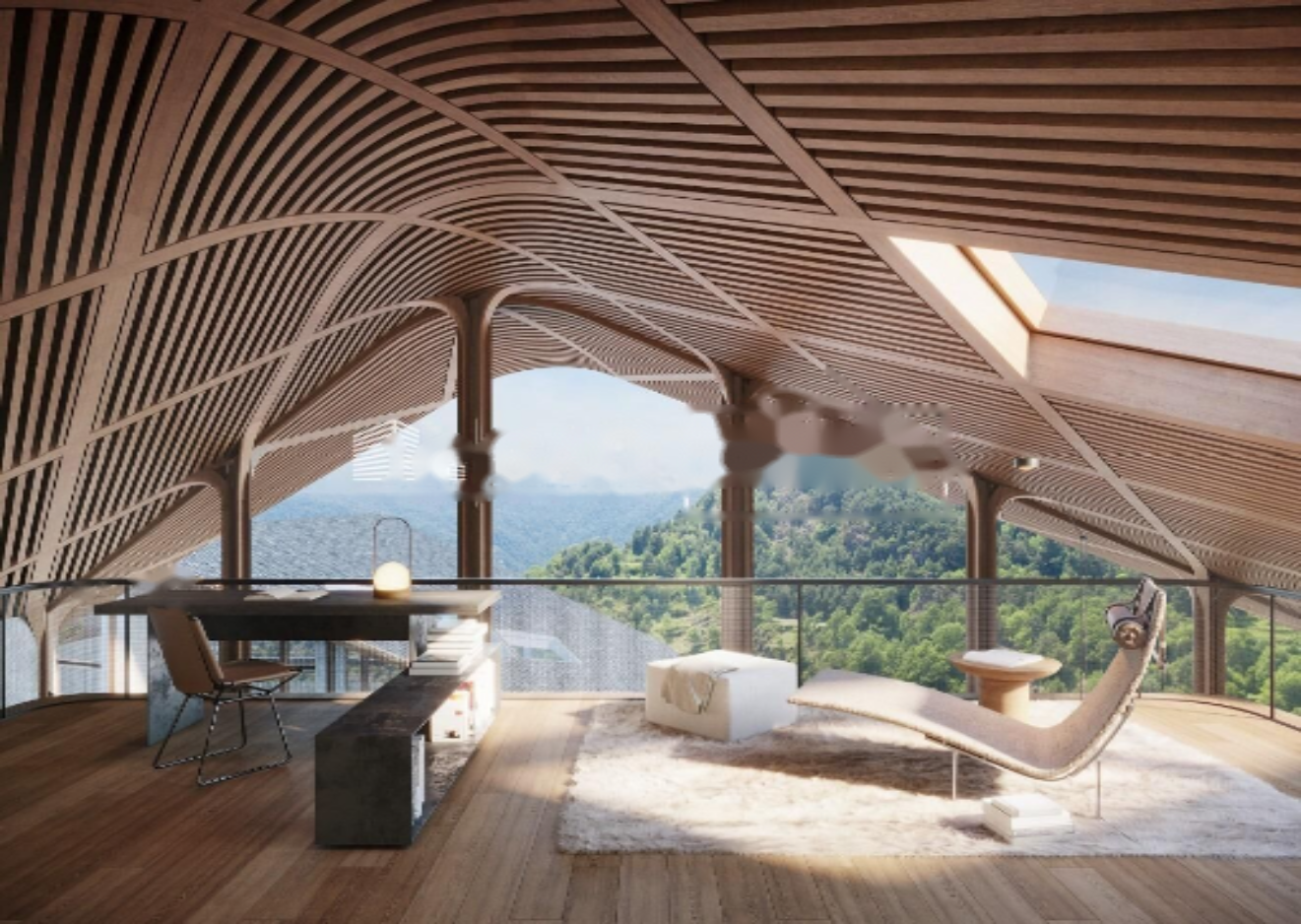 Хотя дерево и камень являются традиционными материалами, в этом проекте они используются как современные. Широкие стеклянные панели ориентированы на захватывающие пейзажи и общественные зоны, что создает инновационный облик и привносит природу в архитектуру. ️
