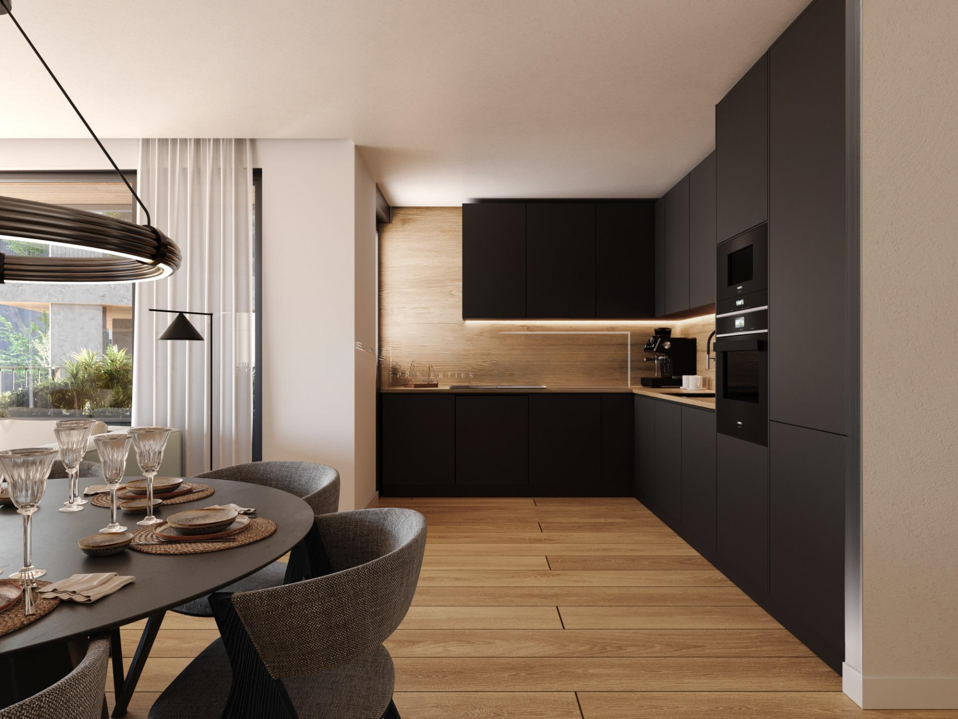 Обработка и качество отделки включают внешнюю алюминиевую столярку типа SCHUCO или аналогичную с термическим прерывателем, тройное остекление с двойной воздушной камерой, отвечающее энергетическим требованиям, керамическое напольное покрытие с двумя вариантами отделки на выбор клиента, встроенные шкафы марки Carré или аналогичные. Открытые кухни с рабочими поверхностями Neolith, Silestone или аналогичными, оборудованные вытяжкой типа "BORA" в плите, индукционная плита, духовка, микроволновая печь, холодильник и посудомоечная машина марки SIEMENS или аналогичная. Ванные комнаты с качественной керамикой и мебели с встраиваемым умывальником, регуляторными кранами Hansgrohe или аналогичными. Душ с эффектом "дождя".