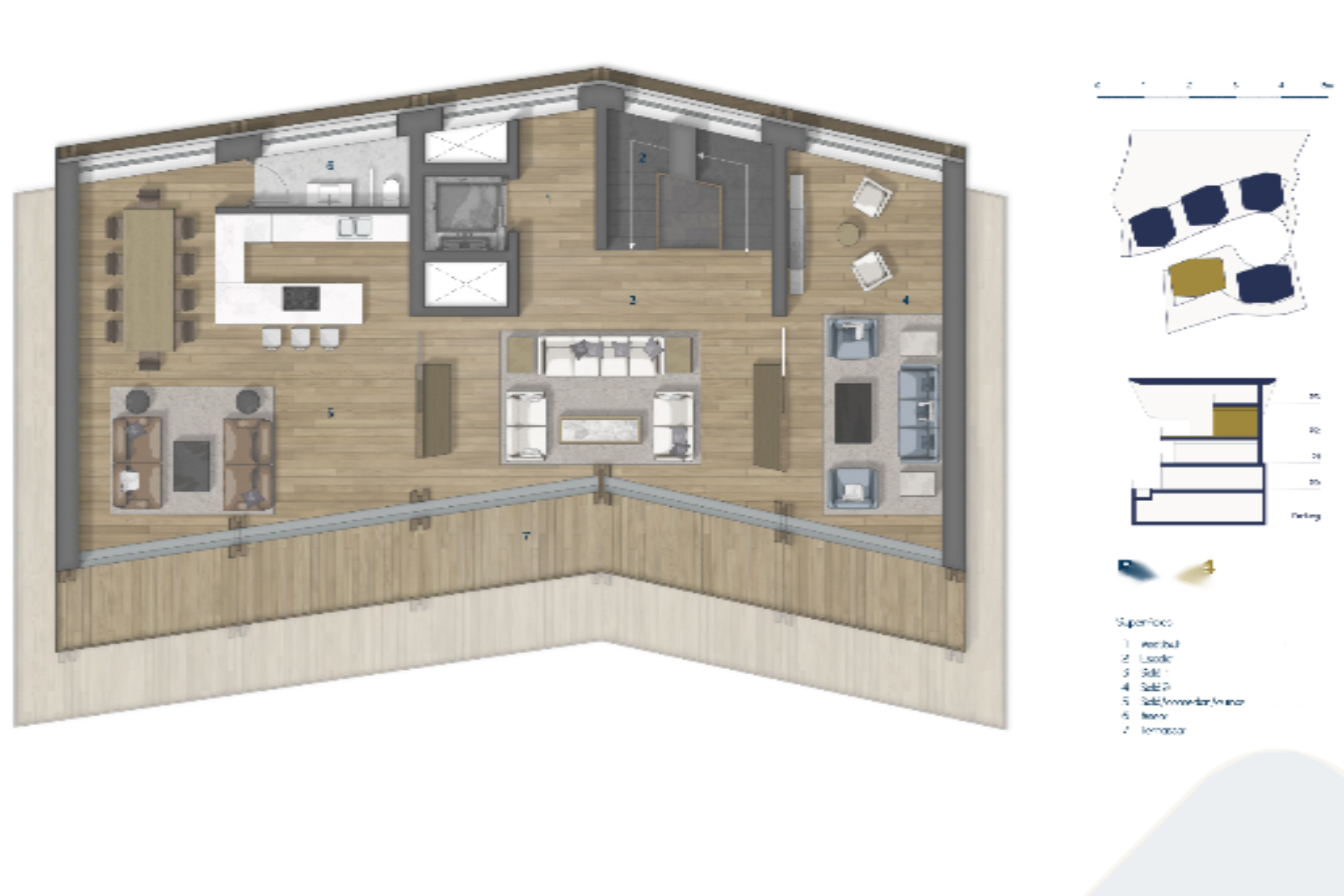 Отделка элегантная и выполнена из материалов самого высокого качества, а дизайн соединяет современные элементы, такие как большие окна, с классической андоррской архитектурой из камня и дерева, чтобы гармонично вписаться в окружающую среду и сохранить суть страны. ️
