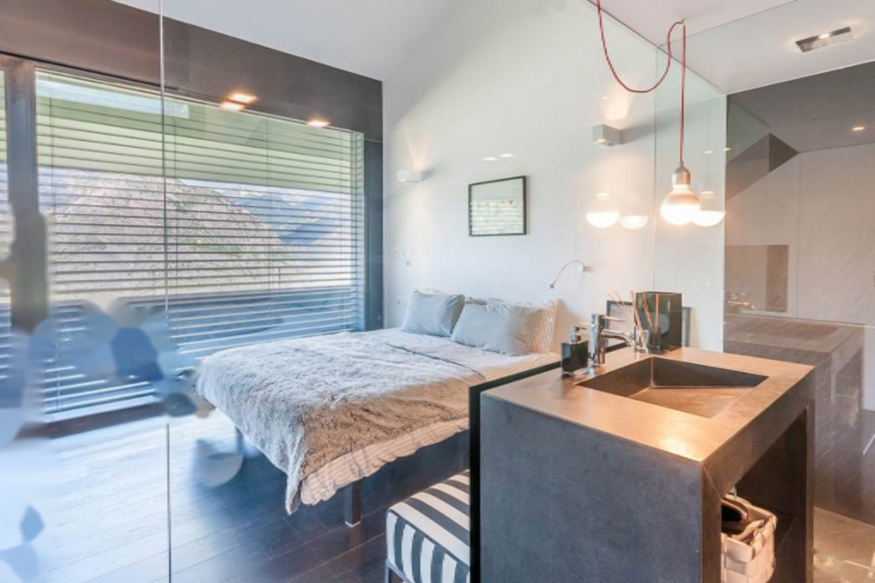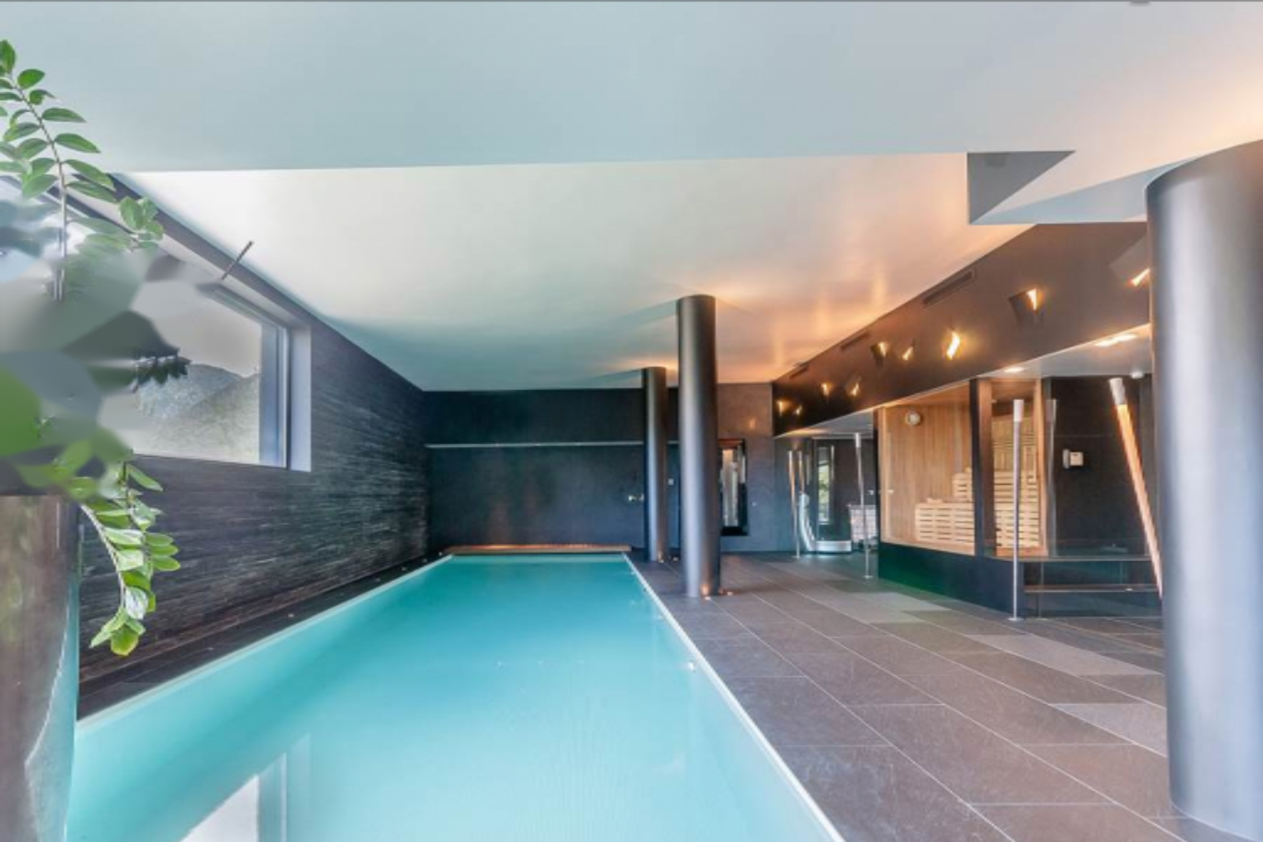 На последнем уровне находится двухместная комната, столовая с камином, зона для стирки и развлекательные площади; открытый бассейн с подогревом, сауна, хаммам, гардеробные, а также тренажерный зал с оборудованием Power Plate Pro 7. Как интерьер, так и экстерьер этого объекта характеризуются минималистским дизайном и большими стеклянными окнами, позволяющими наслаждаться превосходными панорамными видами.