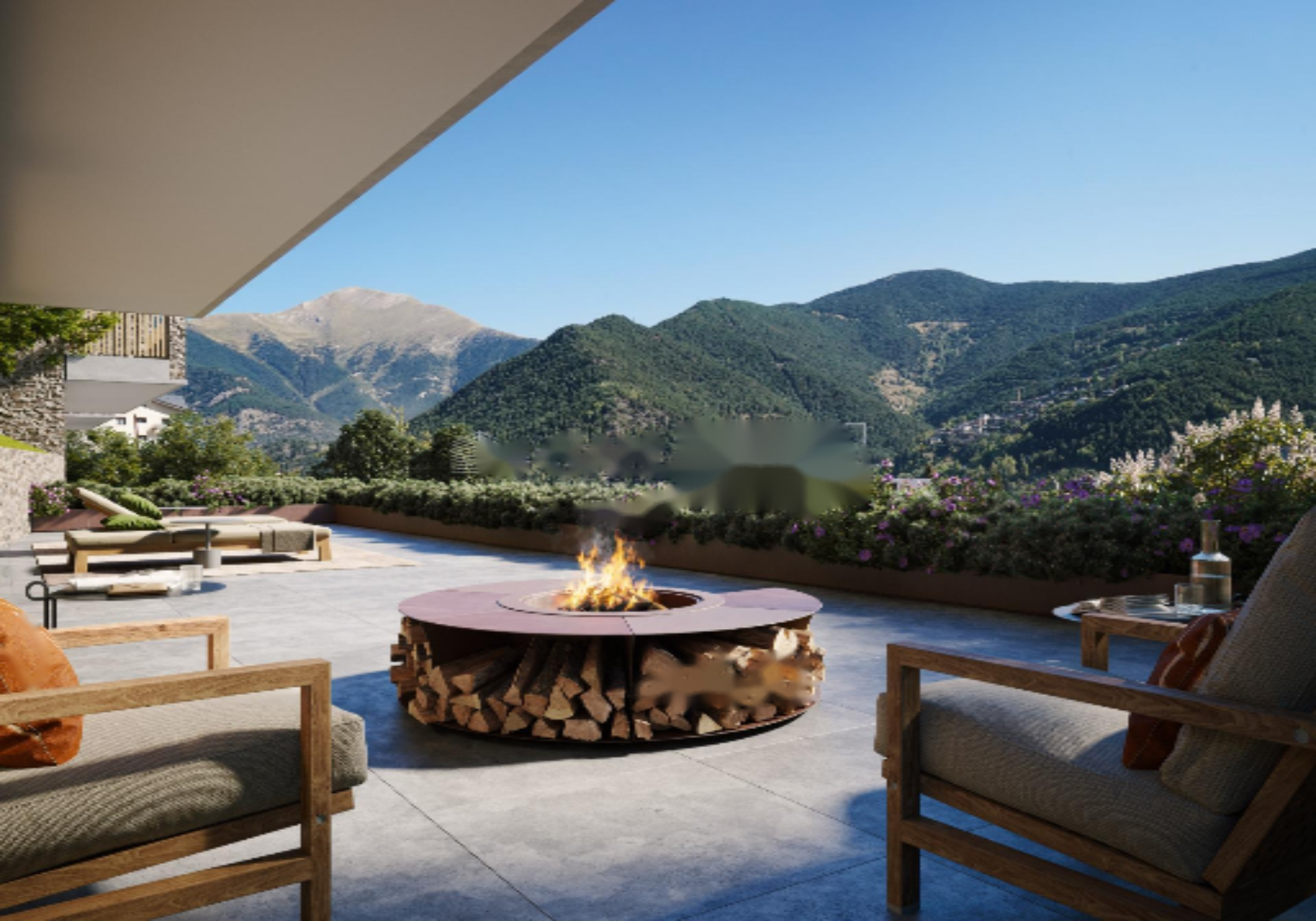 Все помещения дома имеют выход на три большие террасы с юго-восточной ориентацией, обеспечивая много солнечного света и отличные панорамные виды. Дома оснащены системой сбора дождевой воды, а нагрев воды осуществляется через высокоэффективную аэротермальную систему. Применяются экологически чистые и местные материалы, такие как каменные стены, сланцевые плитки и деревянные конструкции, избегая токсичных материалов.