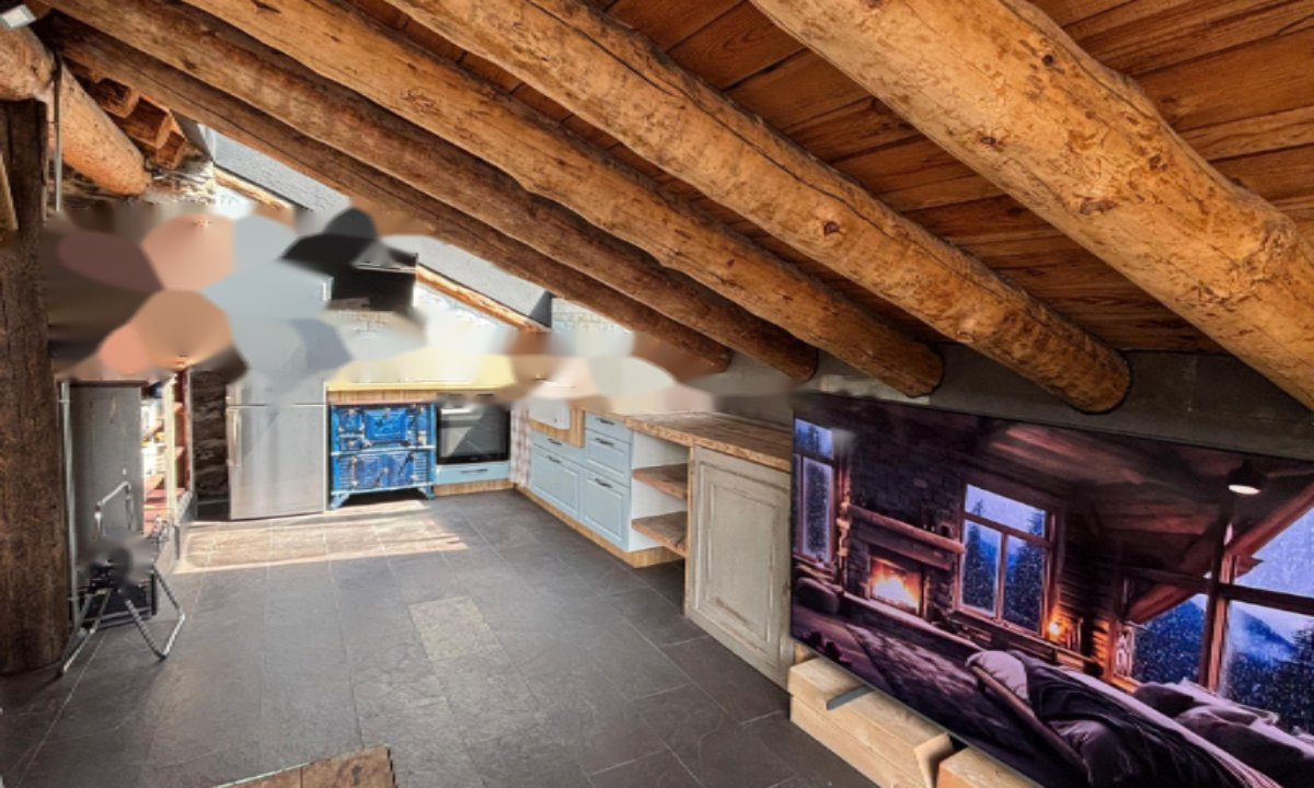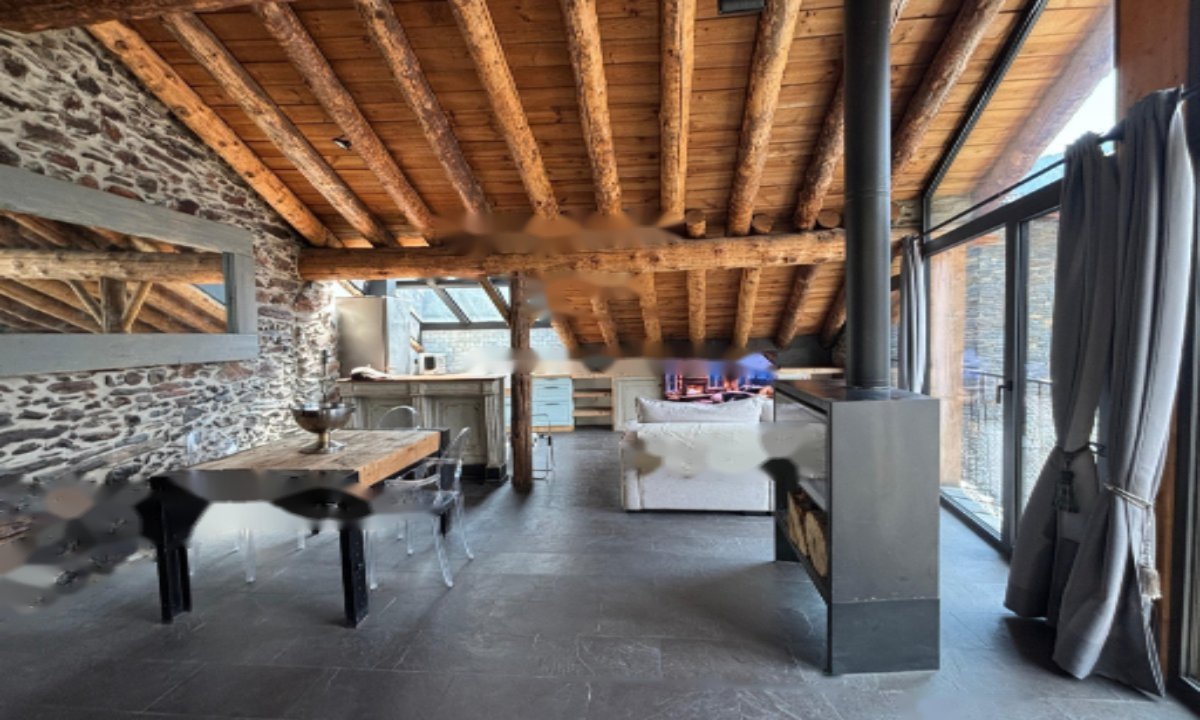 На верхнем этаже находится большая комната с видом на долину и горы, совмещающая кухню/столовую/гостиную и с впечатляющим центральным камином. Из этой комнаты через дверь, восстановленную из сарая, можно попасть в спальню люкс в стиле дуплекс с большой ванной-гардеробной и оригинальной лестницей, ведущей в главную спальню, и частной террасой/солярием с великолепными видами.