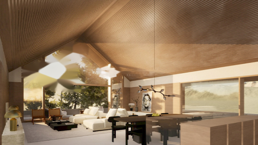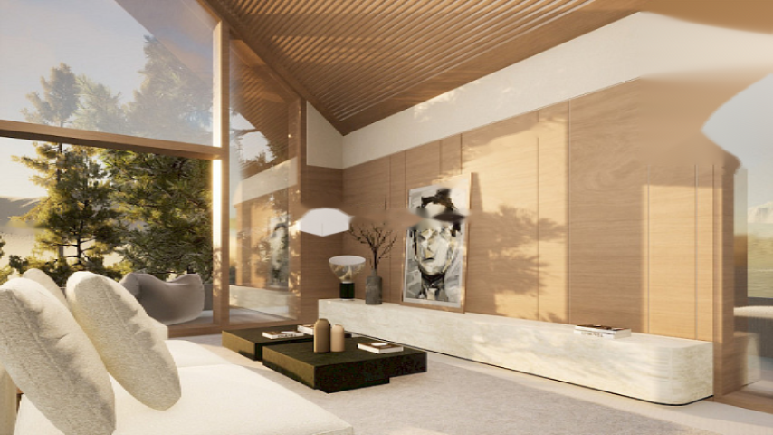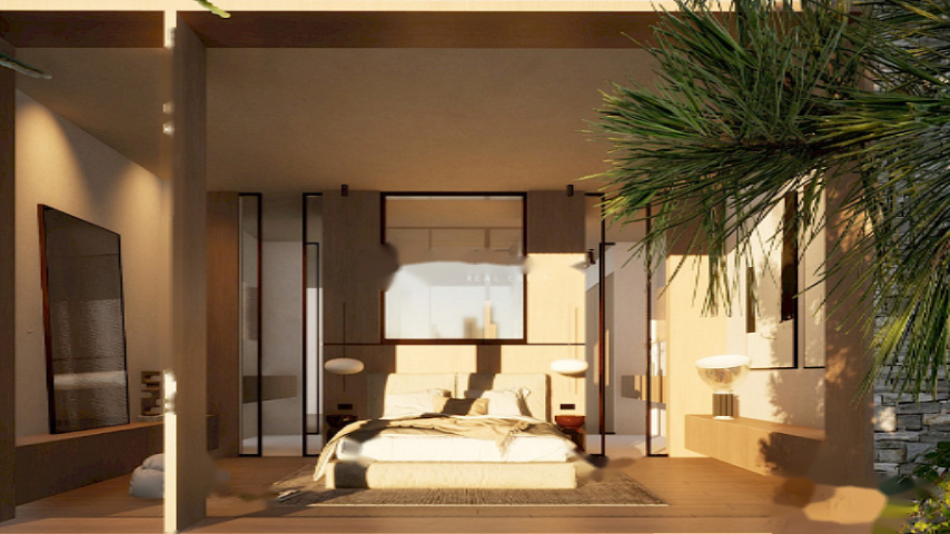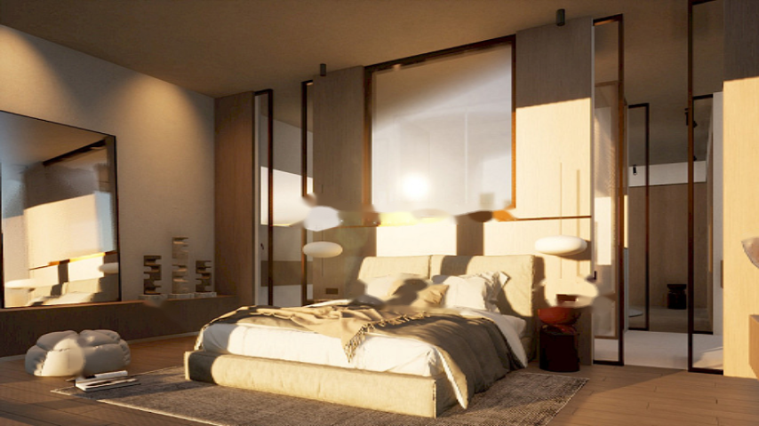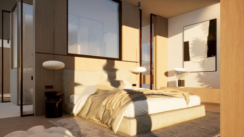 На нижнем этаже расположен просторный гараж на шесть автомобилей и вспомогательные помещения, обладающие высокой практичностью. На основном этаже находятся три внешних двухместных спальни, каждая из которых с отдельной ванной комнатой. Главная спальня выделяется элегантной гардеробной и отличной освещенностью.
