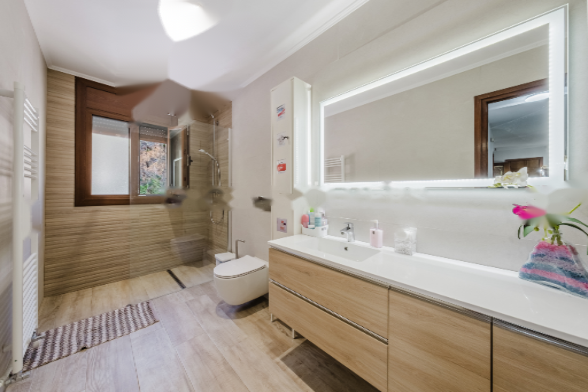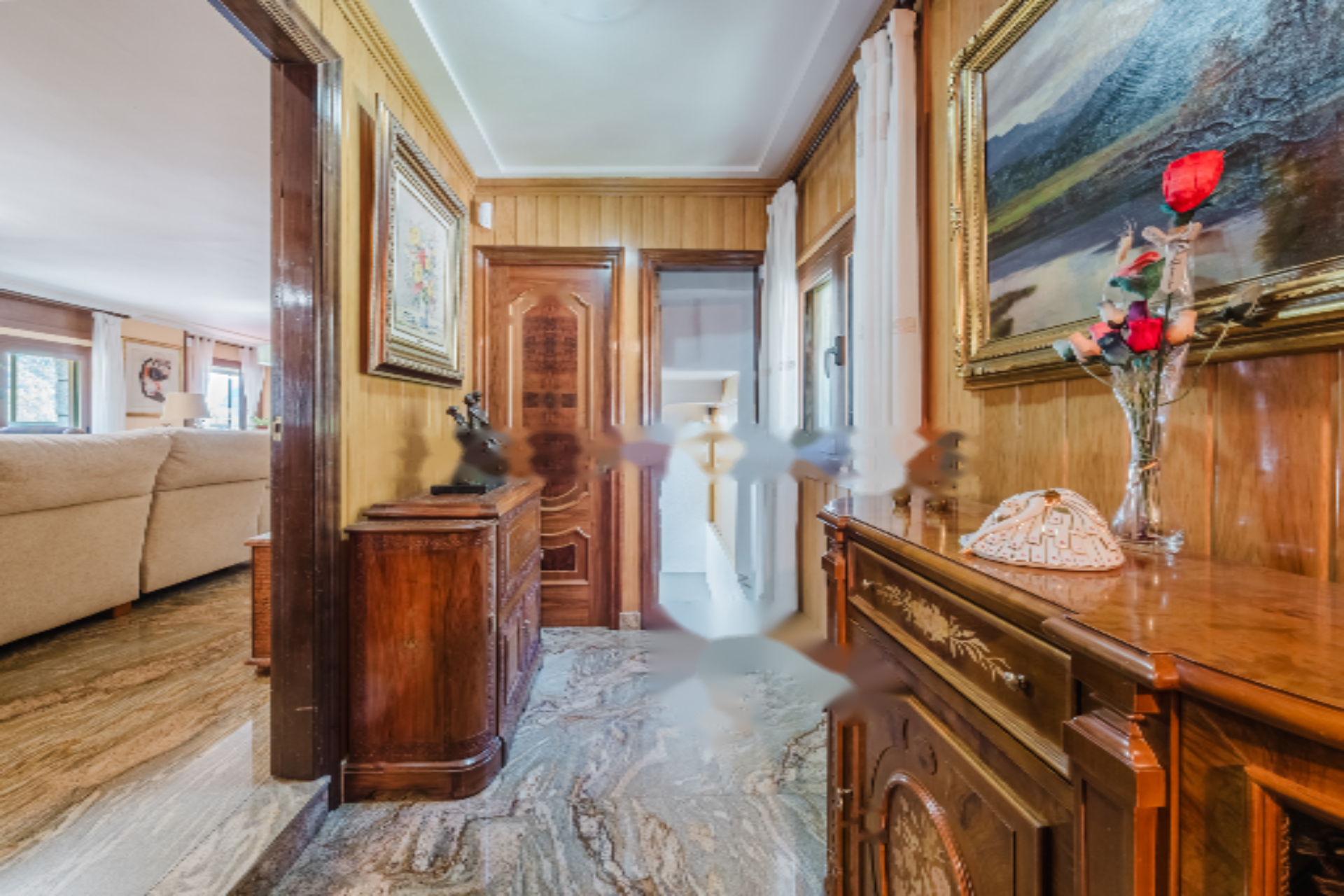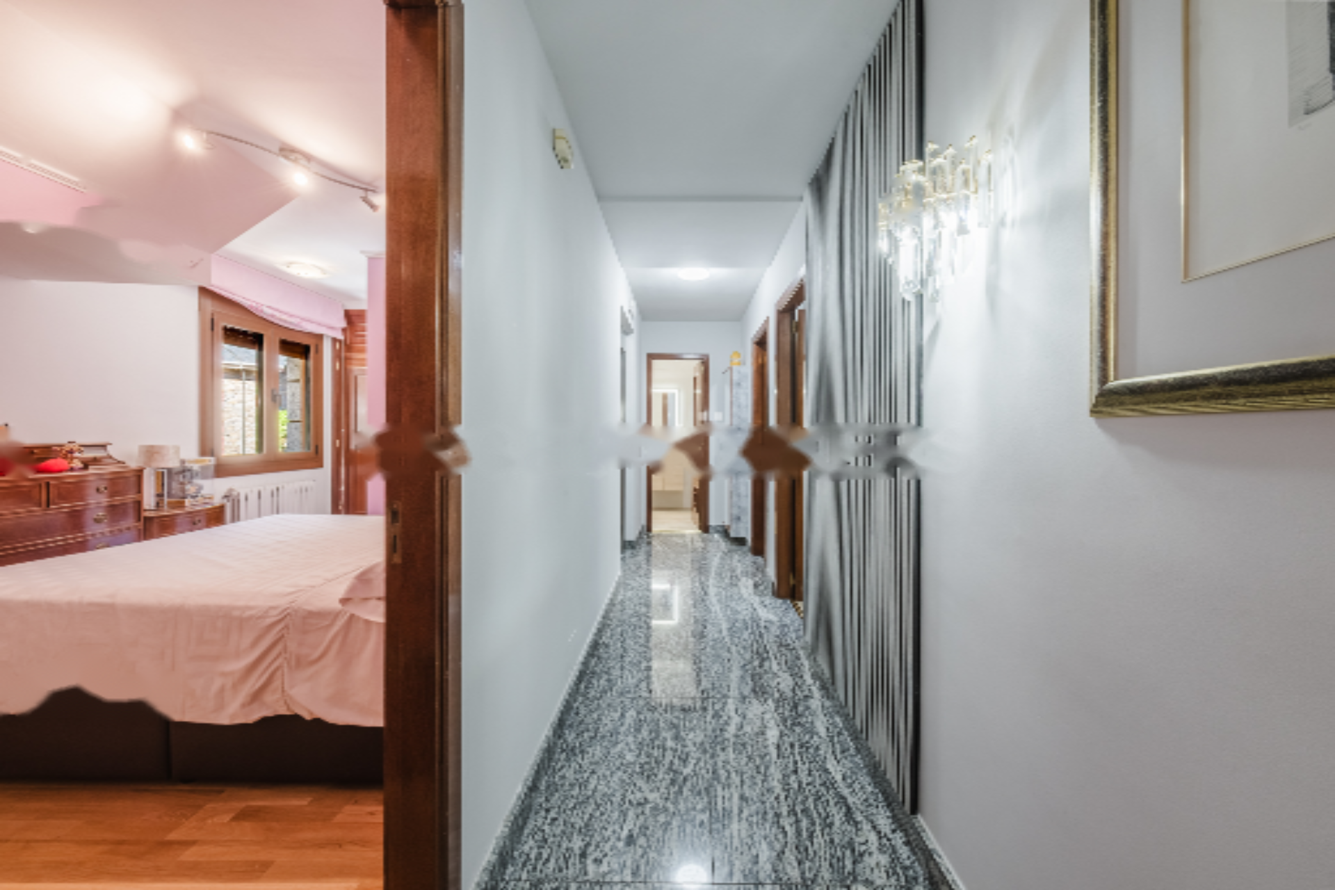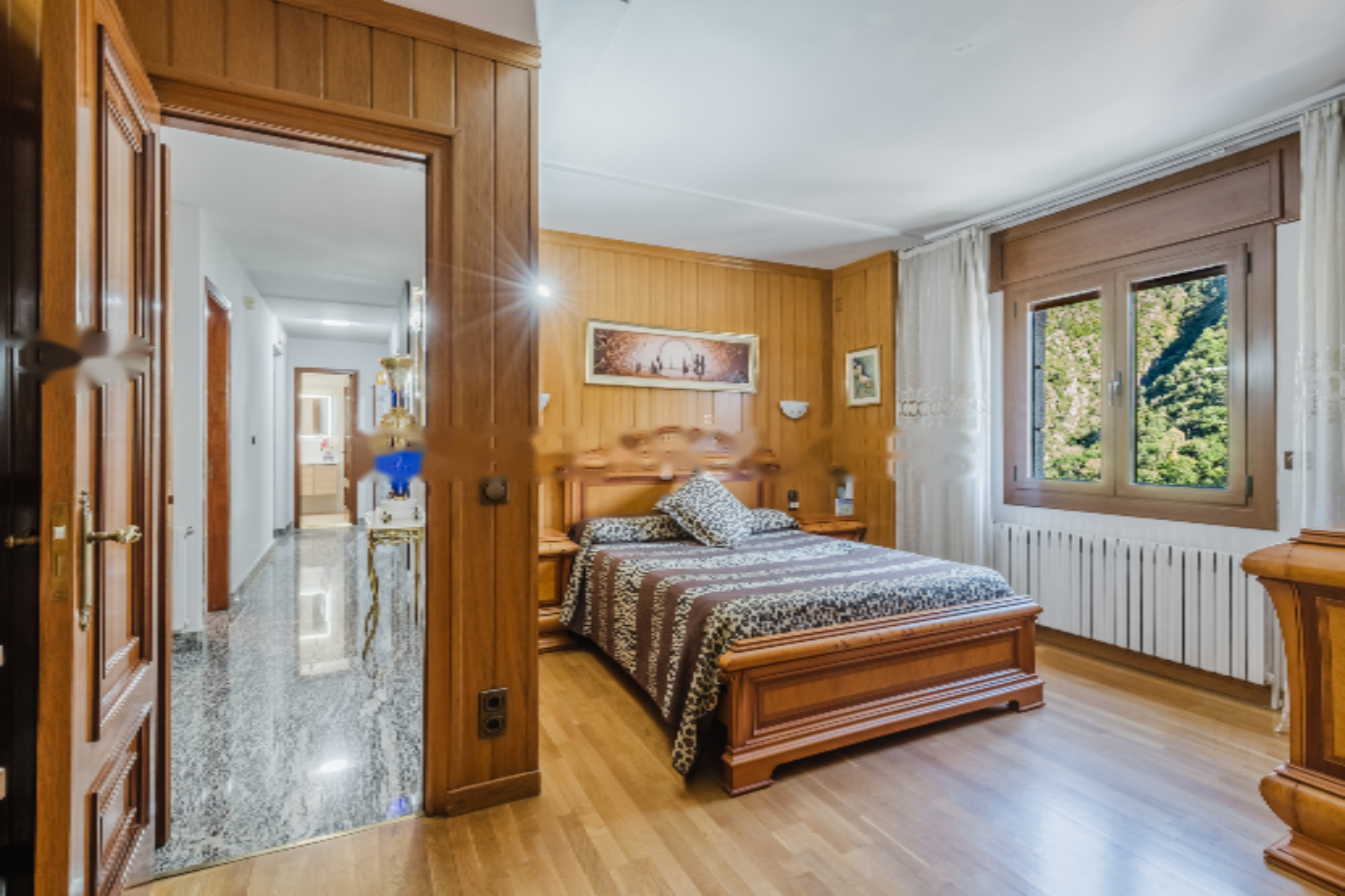 Дом распределен на пяти этажах и включает шесть спален и пять ванных комнат, каждая из которых разработана для обеспечения максимальной приватности и комфорта. Основные комнаты выделяются своей светлостью и просторностью, открывая великолепные виды на окружающую природную и горную среду.