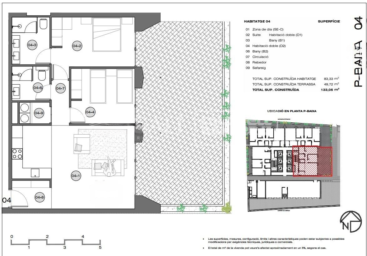 133 m 2; 2 Habitacions; 2 Banys; No Inclòs;