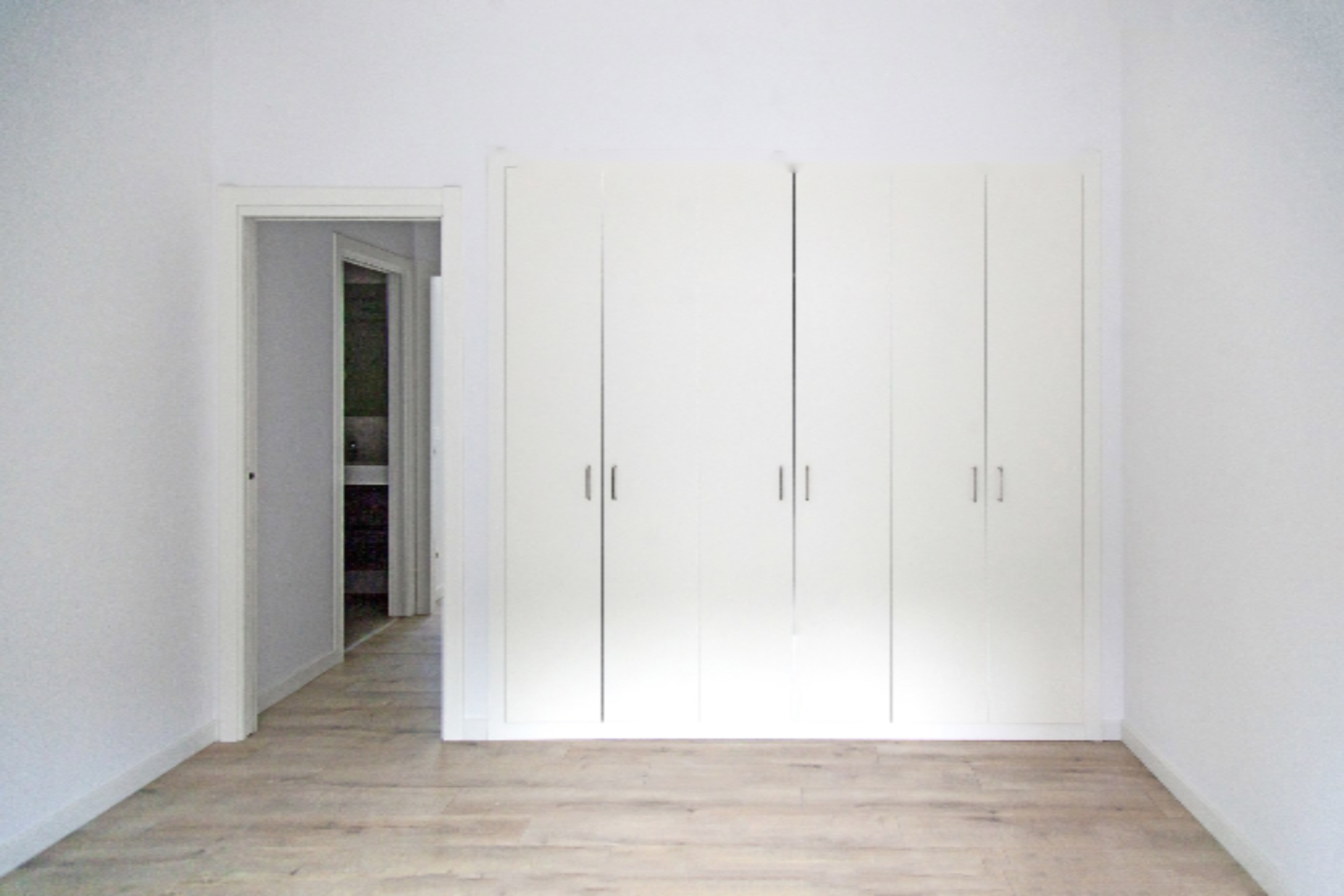 Окна из ПВХ с терморазрывом, тройное остекление, антрацитовая отделка снаружи и белая внутри, обеспечивают звукоизоляцию и теплозащиту, повышая качество жизни внутри. Электрические алюминиевые жалюзи или fuscolit, а также встроенные белоснежные лакированные деревянные шкафы придают пространству современный и функциональный вид.