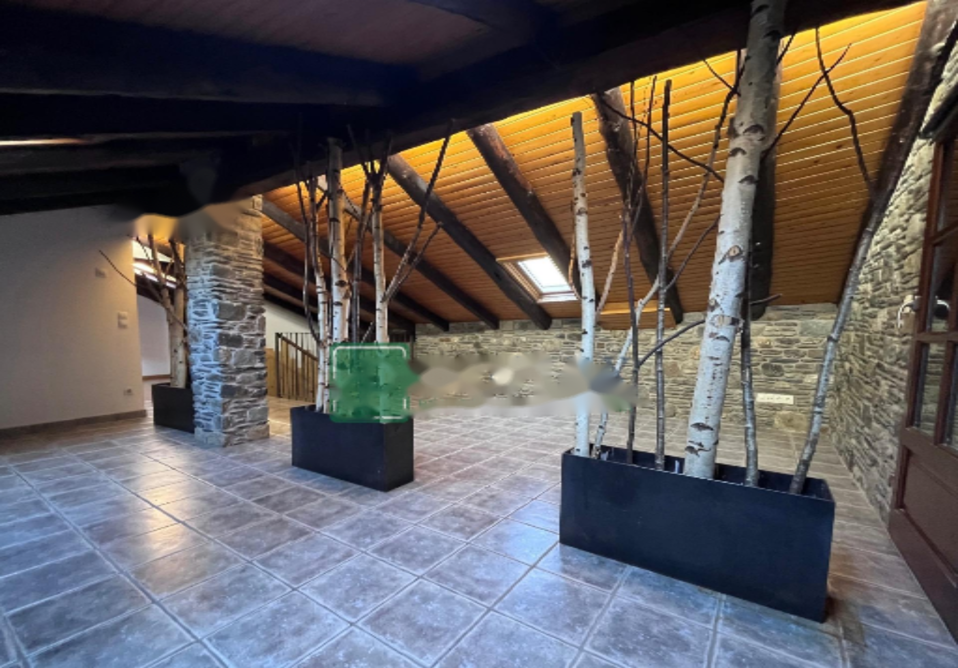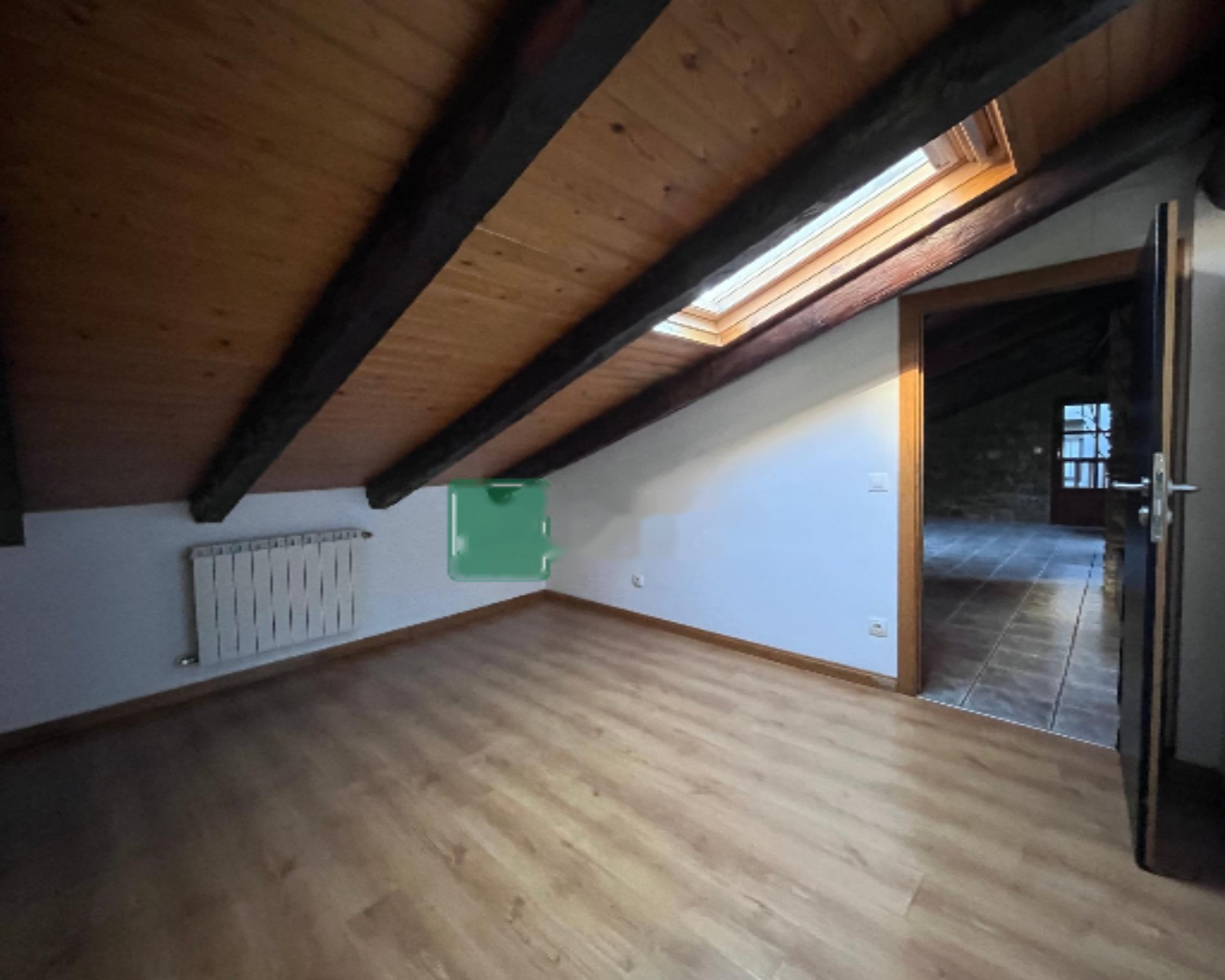 Завершающий, третий этаж представляет собой просторное мансардное пространство, идеальное для перевоплощения в большую гостиную. Окна типа Velux и сосновые балки создают уютную и просторную атмосферу. На этом этаже также присутствует большая ванная комната с ванной и двухместная комната, которую можно превратить в офис.
