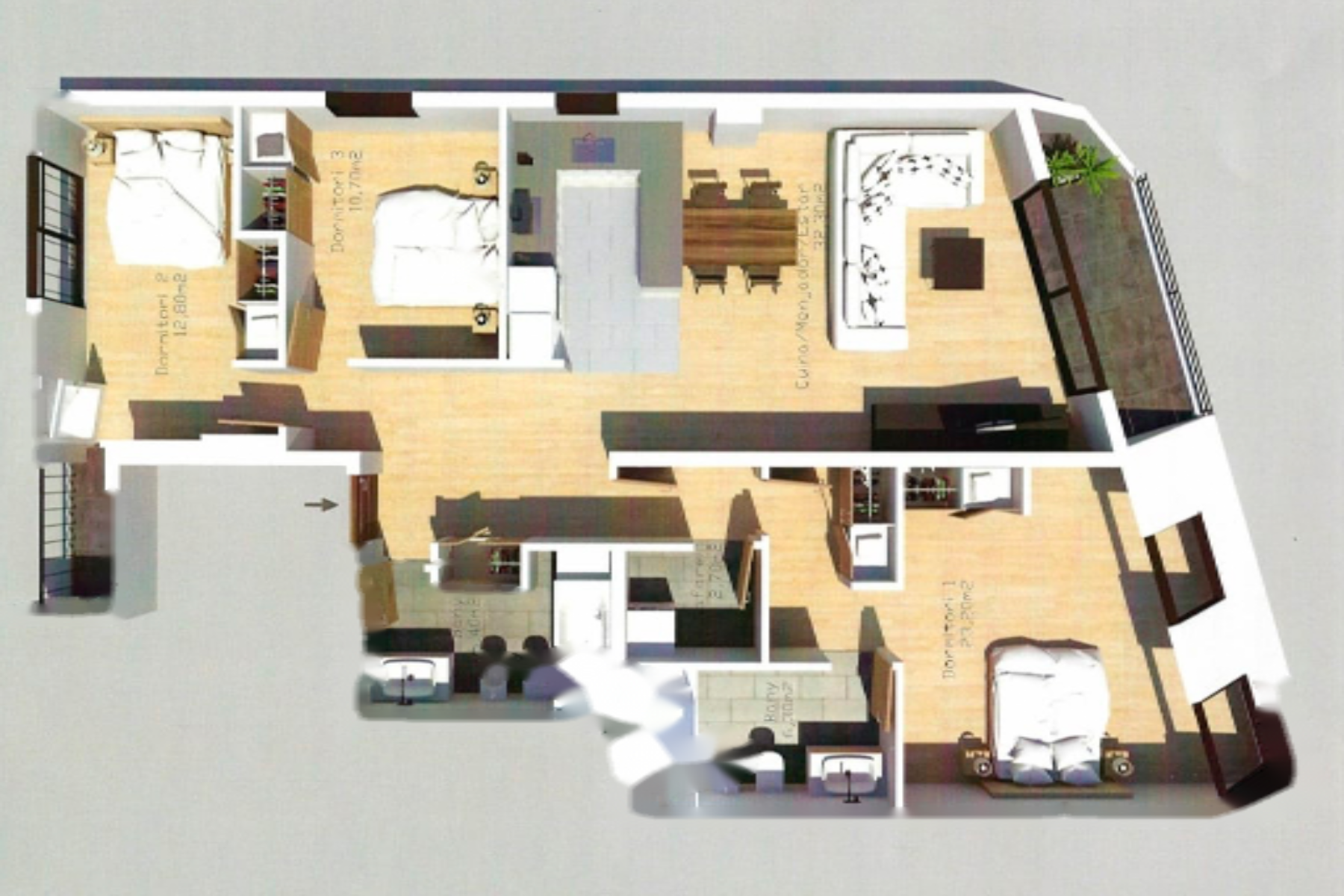 140 m 2, 3 Habitacions, 2 Banys, No Inclòs
