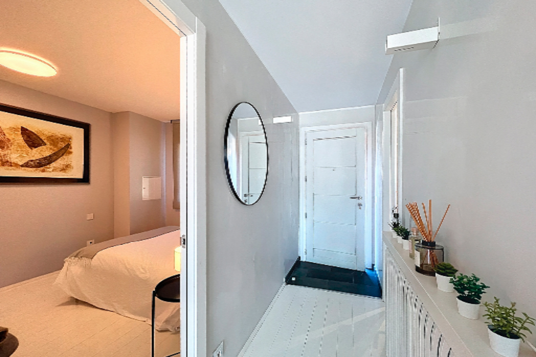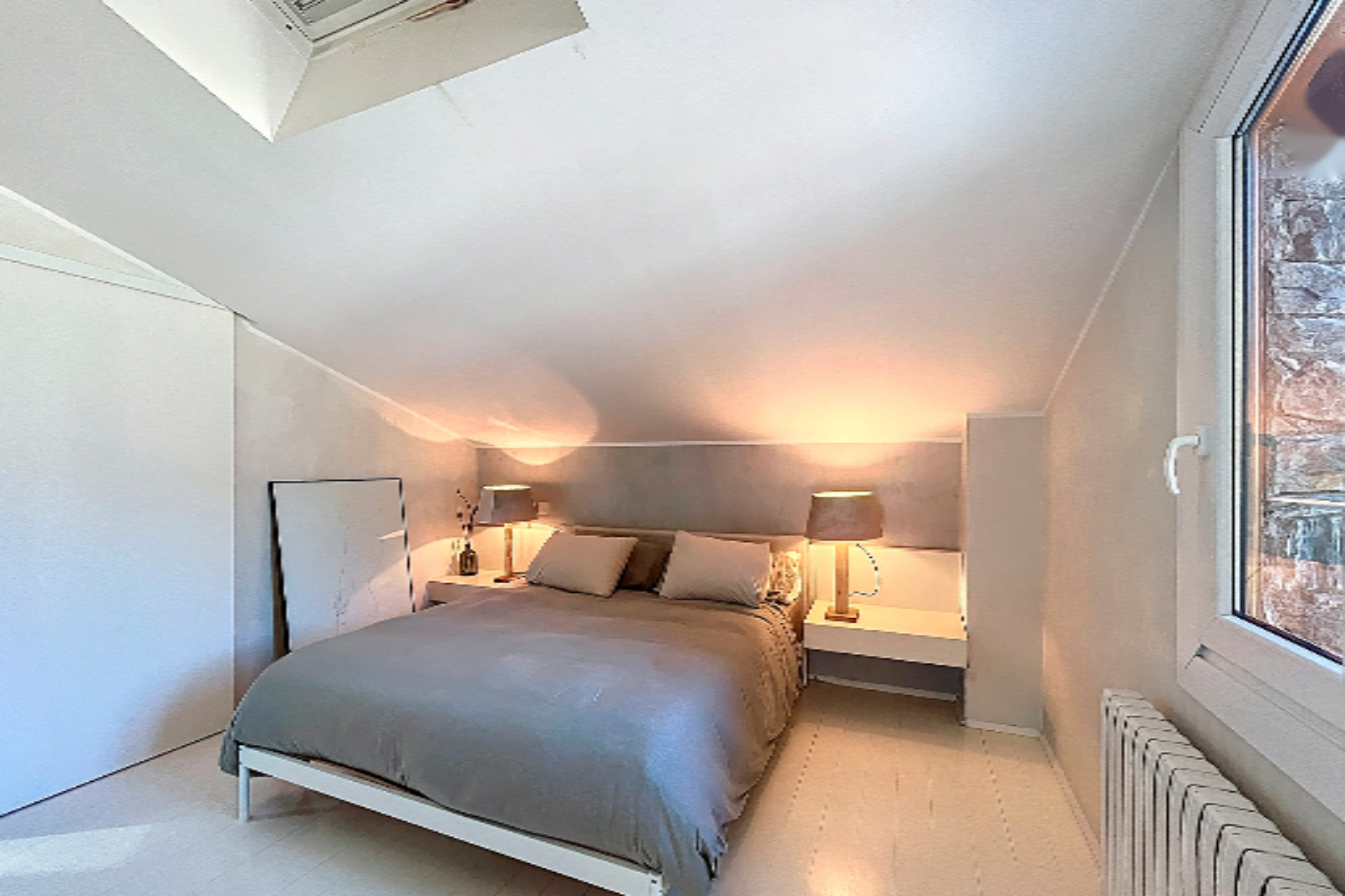 Жилье состоит из 150 м² построенной площади, с 30 м² большим гаражом типа box и террасой с видами и солнцем. Вход осуществляется с нижнего этажа, на уровне улицы, и включает в себя двойную комнату, идеальную для гостей; полноценную ванную комнату с душем и прачечную. Следуя далее, мы попадаем в просторную гостиную-столовую с интегрированной кухней. Гостиная, с большими окнами, которые пропускают естественный свет в течение всего дня, камином и выходом на большую террасу с непревзойденными видами на Касамания; кухня от марки Boffi полностью оборудована бытовой техникой Gaggenau.