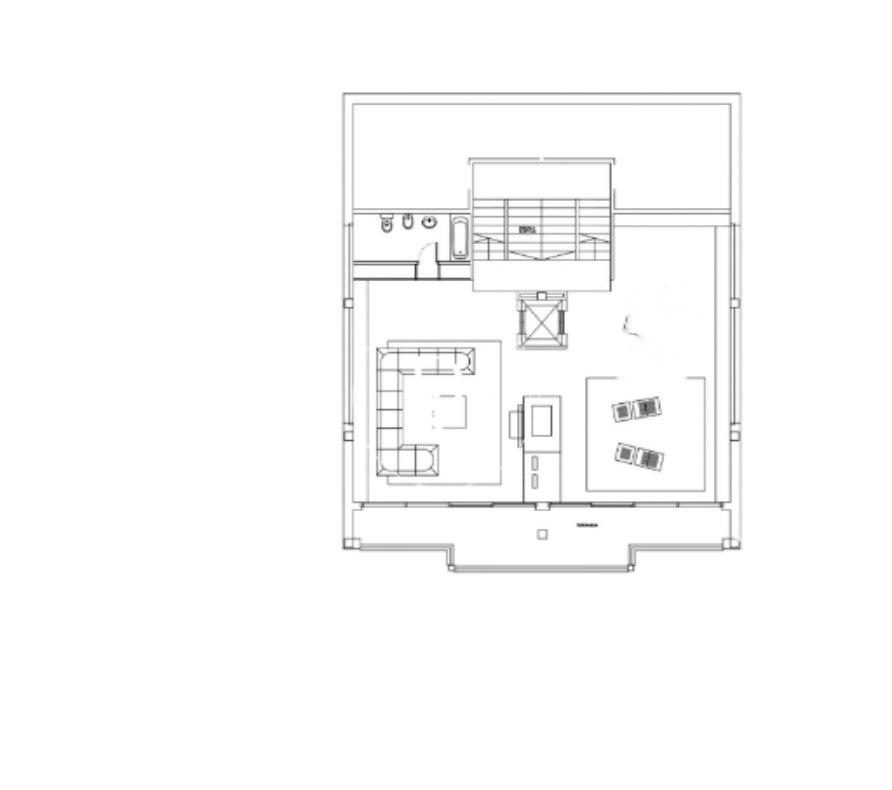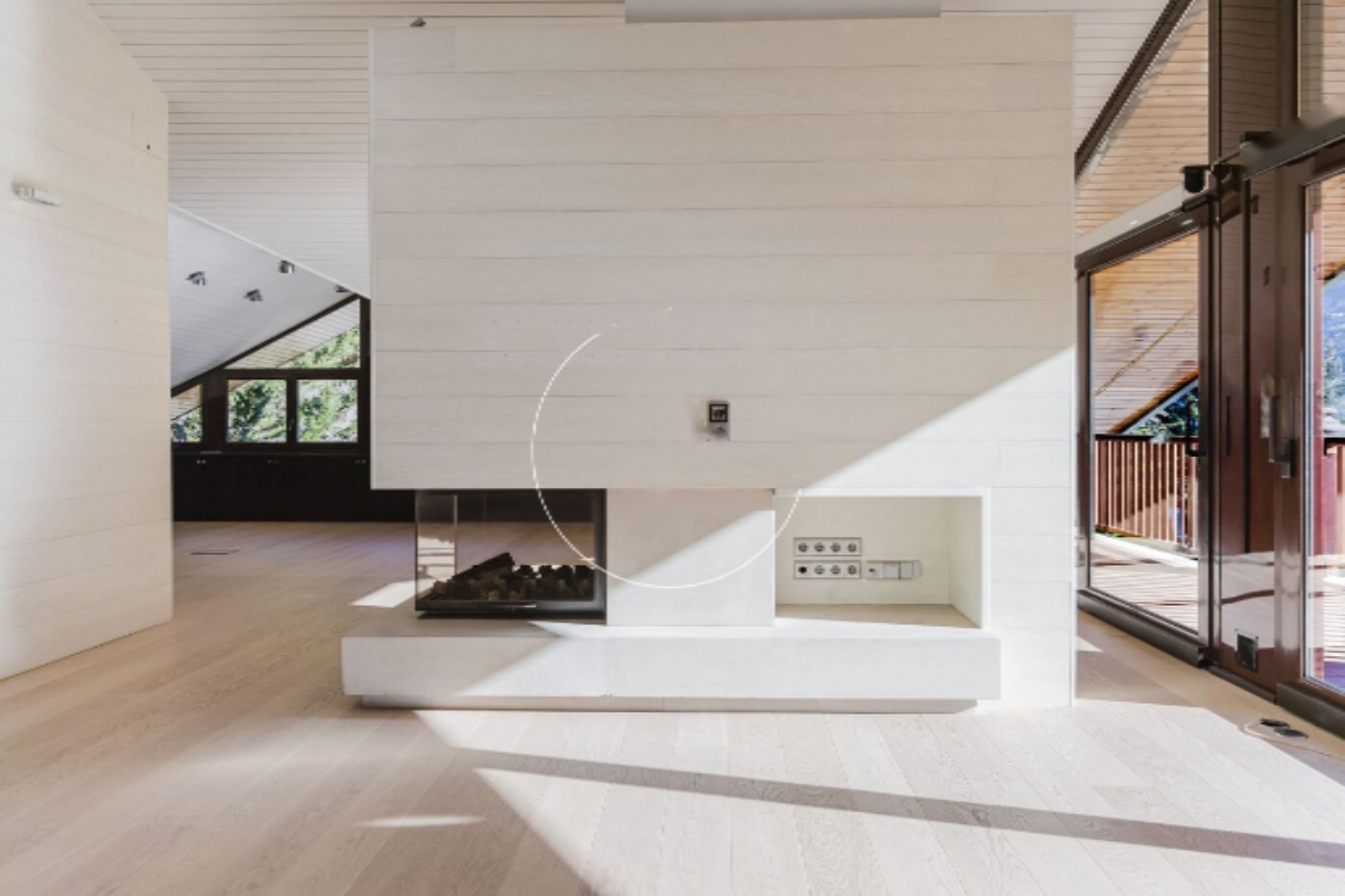 На верхнем этаже расположена вторая гостиная с электрическим камином, идеально подходящая для семейного отдыха. Огромные окна заливают комнату солнцем и естественным светом на протяжении всего дня, создавая тёплую и уютную атмосферу. В дополнение здесь расположена ванная комната и терраса для наслаждения панорамными видами на город и окружающий пейзаж.