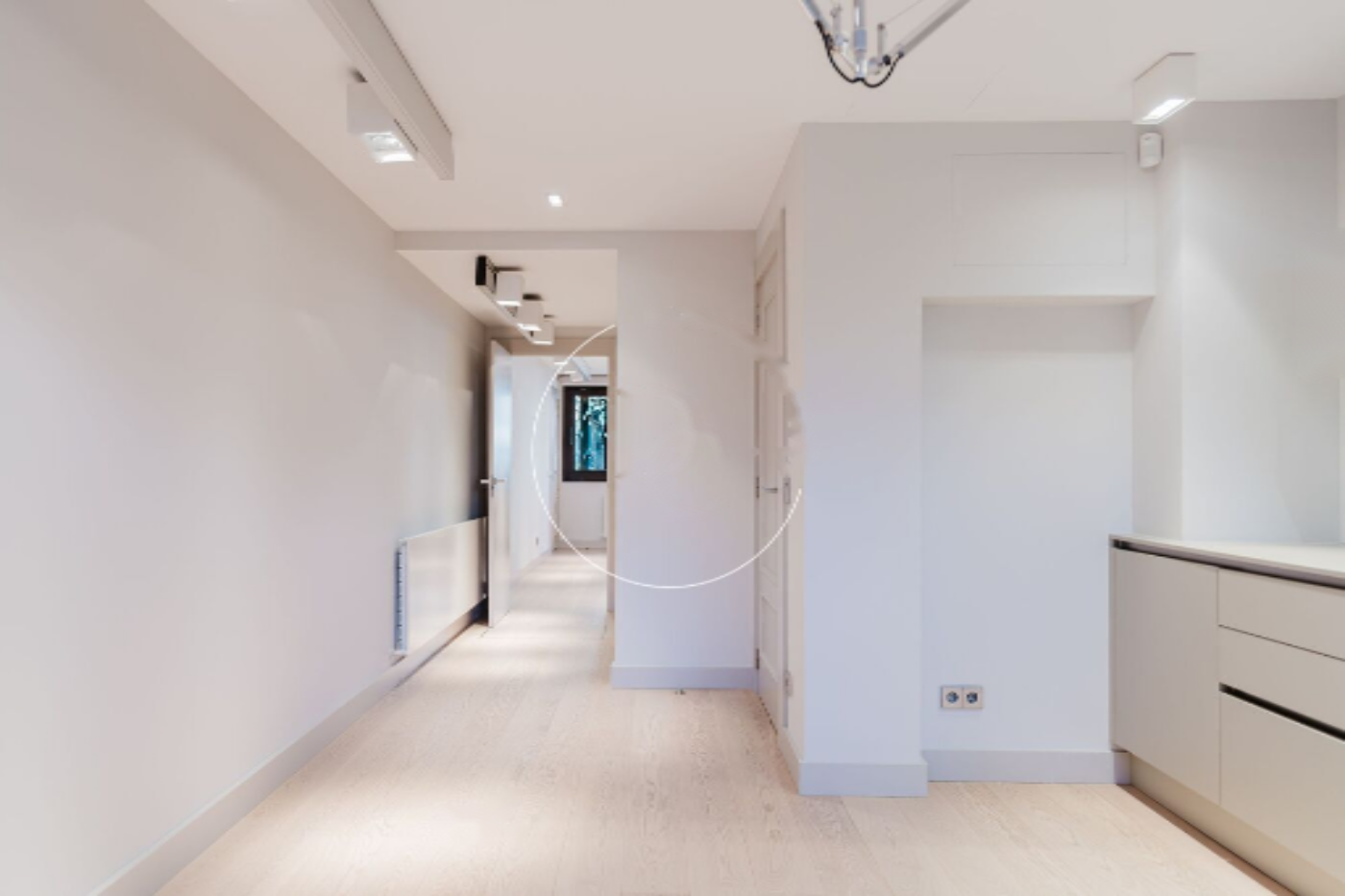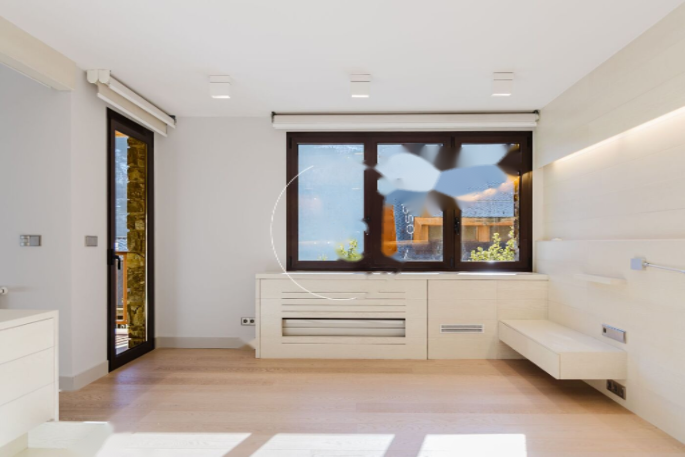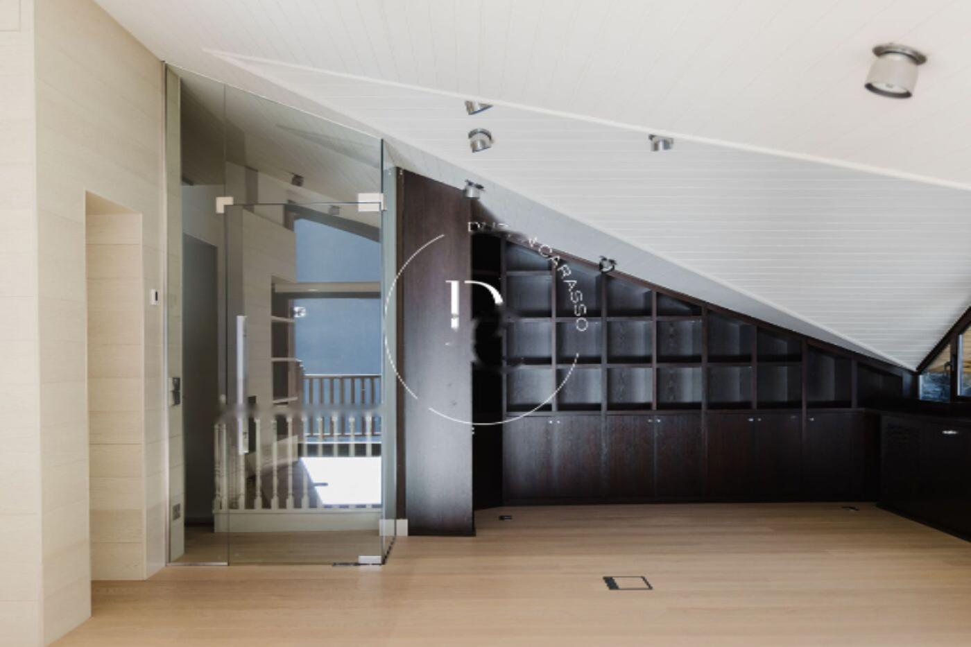 Мы входим в дом через гараж площадью 189 м², созданный для максимального комфорта и организации. Он вмещает 9 автомобилей, имеет зону для сушки и хранения лыж, два кладовых, сауну, кладовую и машинное помещение с котлом. Всё готово, чтобы сделать повседневную логистику простой и эффективной.