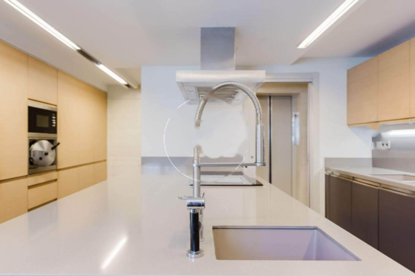 Главный этаж сочетает просторные и светлые помещения с практичным и элегантным дизайном. Кухня площадью 33 м², оборудована современной техникой, соединена с большой столовой и гостиной площадью 40 м², наполненной естественным светом. На этом этаже также есть кабинет, библиотека, игровая комната и ещё одна многофункциональная комната, а также гостевой туалет. Окружная терраса на первом этаже включает застеклённую зону для обедов на открытом воздухе и барбекю, идеально подходит для отдыха на свежем воздухе с семьей и друзьями.