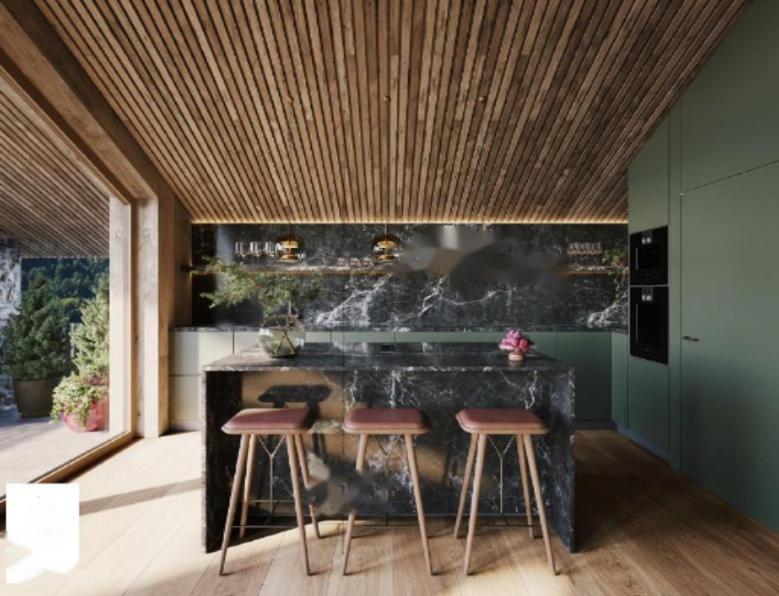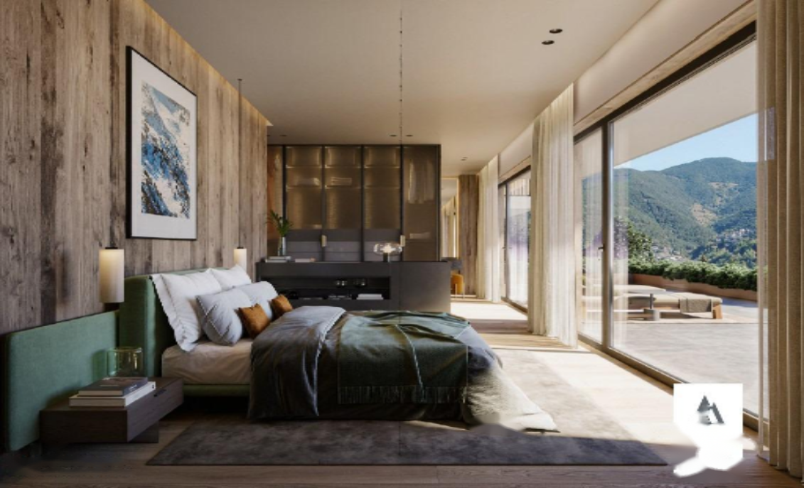 Особенности: внешняя столярка высокого качества с потайной створкой и тройным стекланием, бронированная входная дверь и секционные автоматические двери гаража с дистанционным управлением; террасы с плиткой из нескользящего камня, ограждения из местного камня и стали, декорированные цветочными горшками; интерьеры с высококачественными отделочными материалами, такими как натуральный камень, металл и керамика; напольные покрытия из деревянной доски, керамики и полированного бетона с эпоксидной смолой; полностью оборудованная кухня с высококачественной техникой Bosch и сантехникой; ванные комнаты с материалами высокого качества и современным дизайном; гибкая планировка нижнего этажа, возможность создания суита 60м² или комбинации спальни и многофункциональной комнаты; встроенный камин, хранилище для лыж и обогреватель для ботинок; низкоуходные сады.