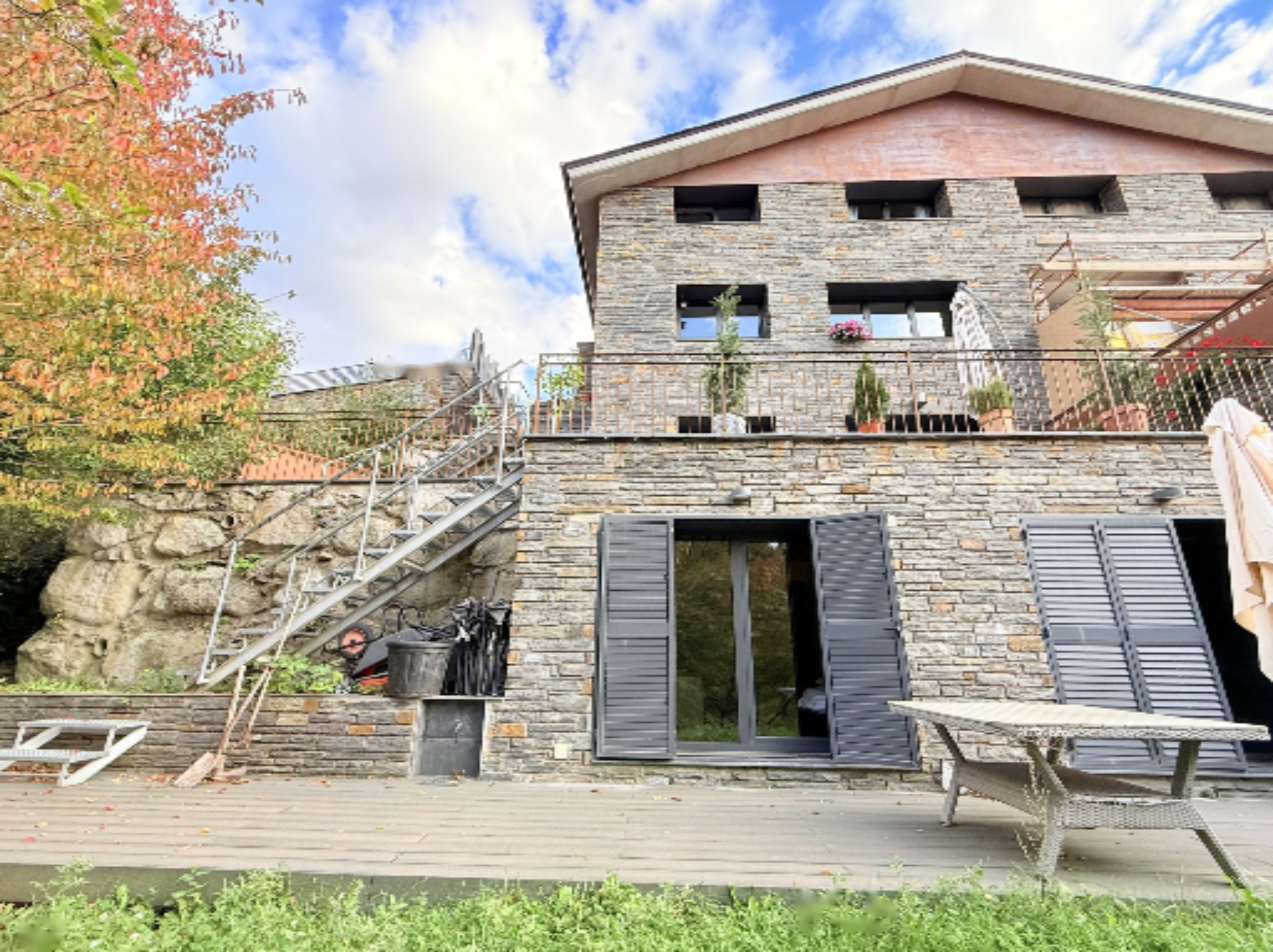 Построенный на участке площадью 650 м², этот трехэтажный шале предлагает 407 м² площади, распределенной на пяти уровнях с полуетажами, соединенными лифтом и внутренней лестницей. Стиль включает натуральный камень на фасадах и дерево в верхних частях, а также сланцевые крыши, создающие горный и элегантный характер. Все окна имеют двойное остекление, и жилье находится в идеальном состоянии.