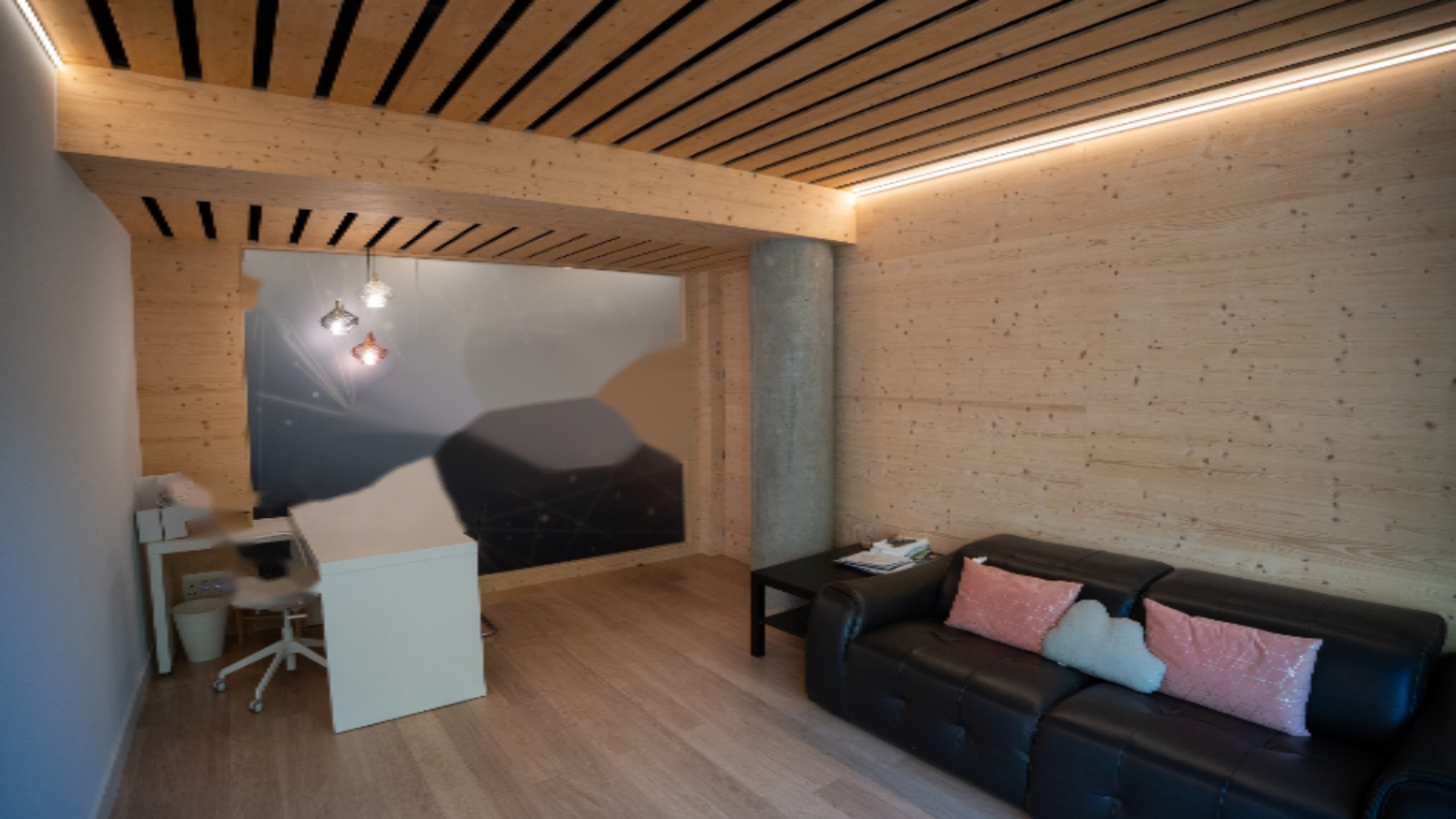 На полуподвальном этаже (-1) находится гостиная с чугунной печкой и выходом на другую террасу площадью 49 м², а также полноценная ванная и кладовая. На втором полуподвальном этаже (-2) находится открытое пространство с кабинетом и прямым выходом в частный сад площадью более 500 м², идеально подходящий для наслаждения солнцем и тишиной.