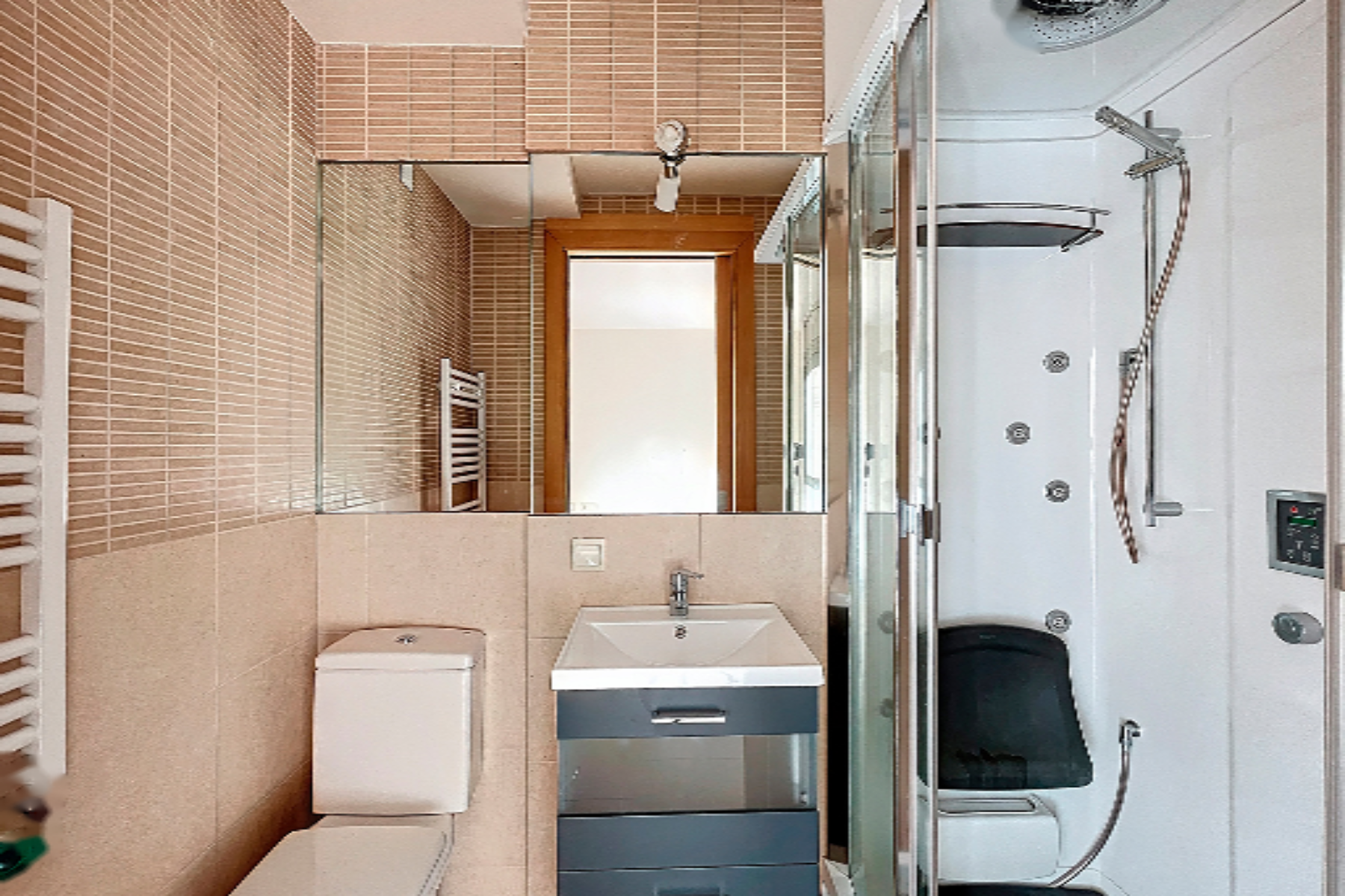 Квартира включает 4 спальни, одна из которых с ванной, и 3 полные ванные комнаты. Гостиная отделена от кухни, что явно разделяет дневную и ночную зоны. Кухня офисного типа с встроенной прачечной, что очень удобно в повседневной жизни.