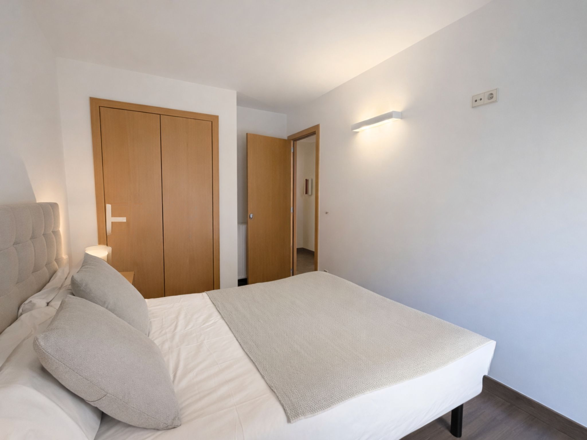 Ночная зона расположена отдельно для большего уединения: главная спальня с встроенным шкафом и ванной комнатой в суите, оснащенной ванной и биде, также имеет доступ на террасу. Вторая спальня просторная, с выходом на внутренний дворик с независимым входом. Здесь также имеется еще одна полная ванная комната с душем. Квартира также включает в себя практичную отдельную прачечную.