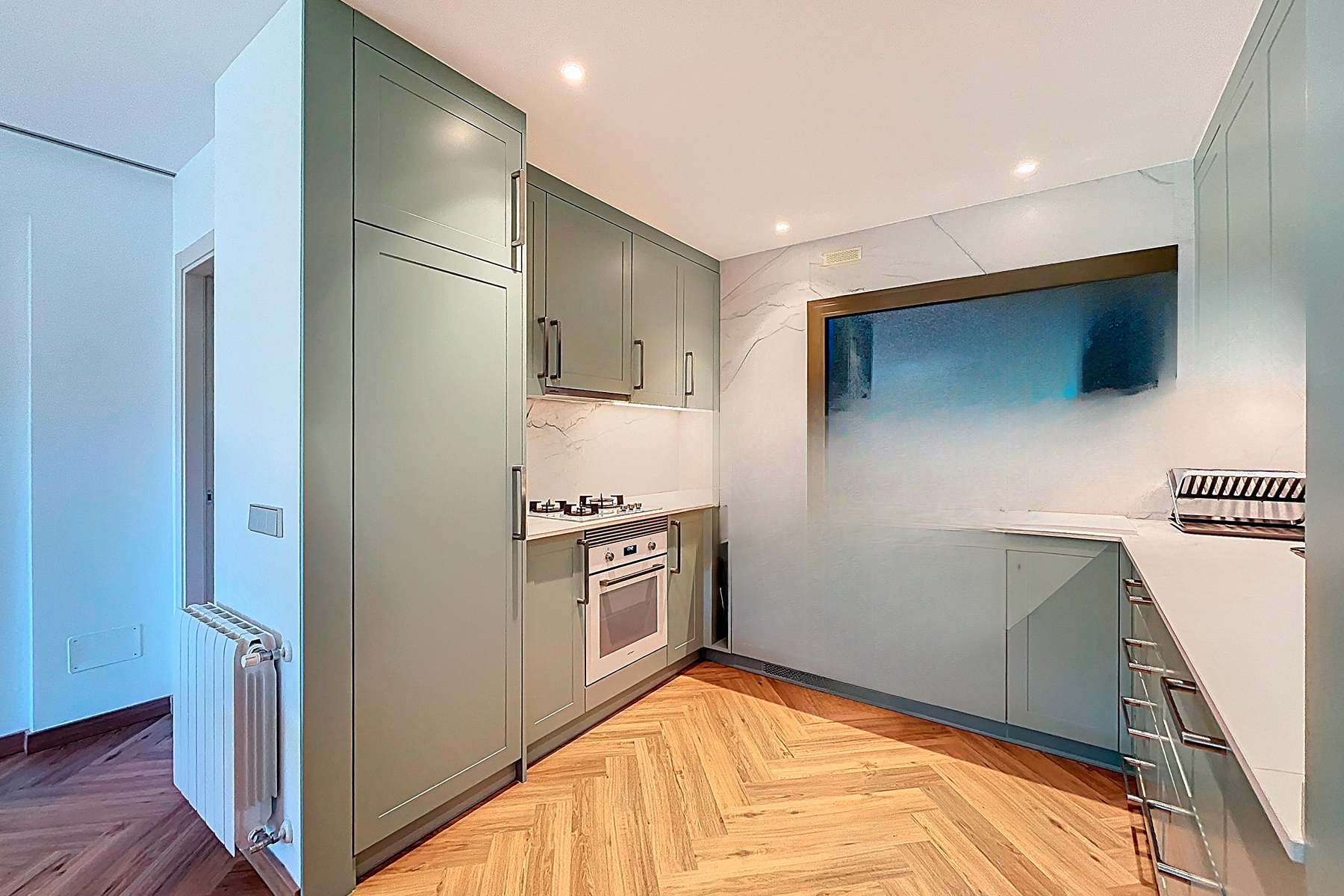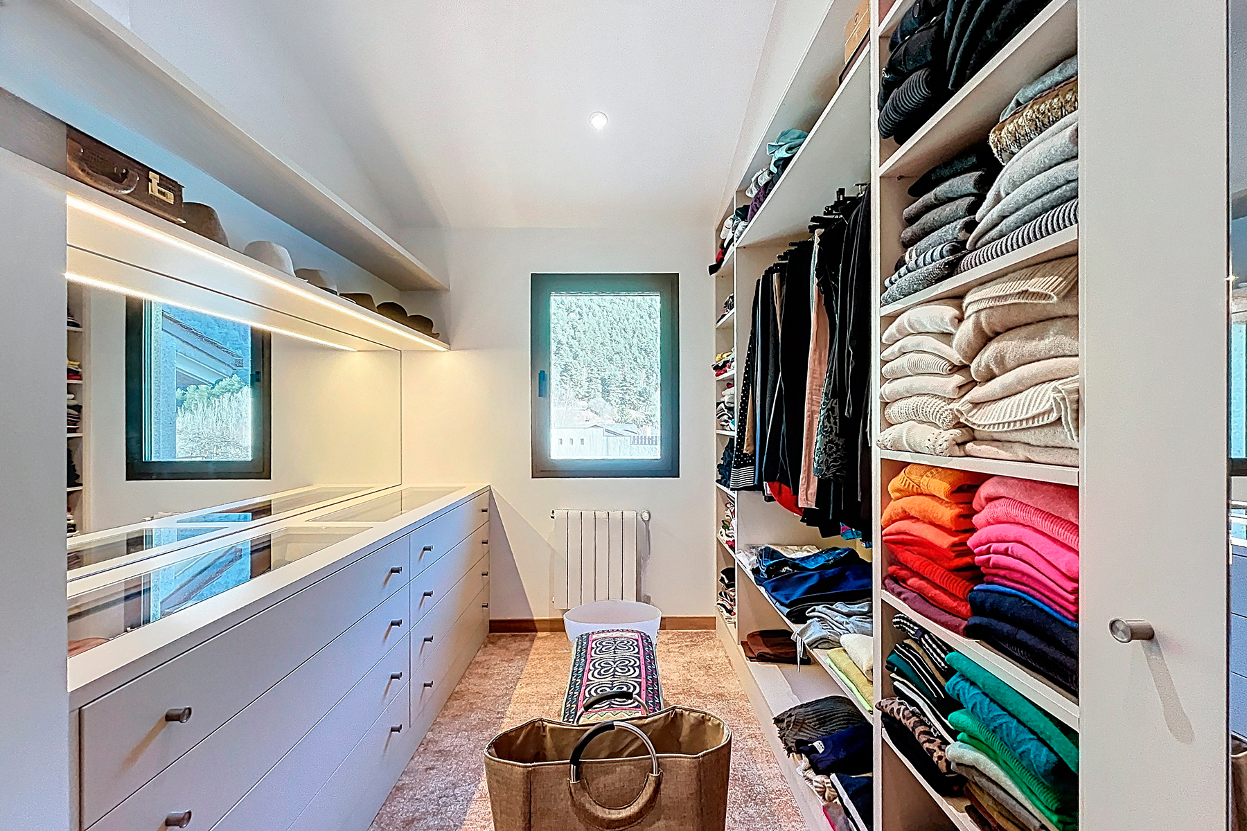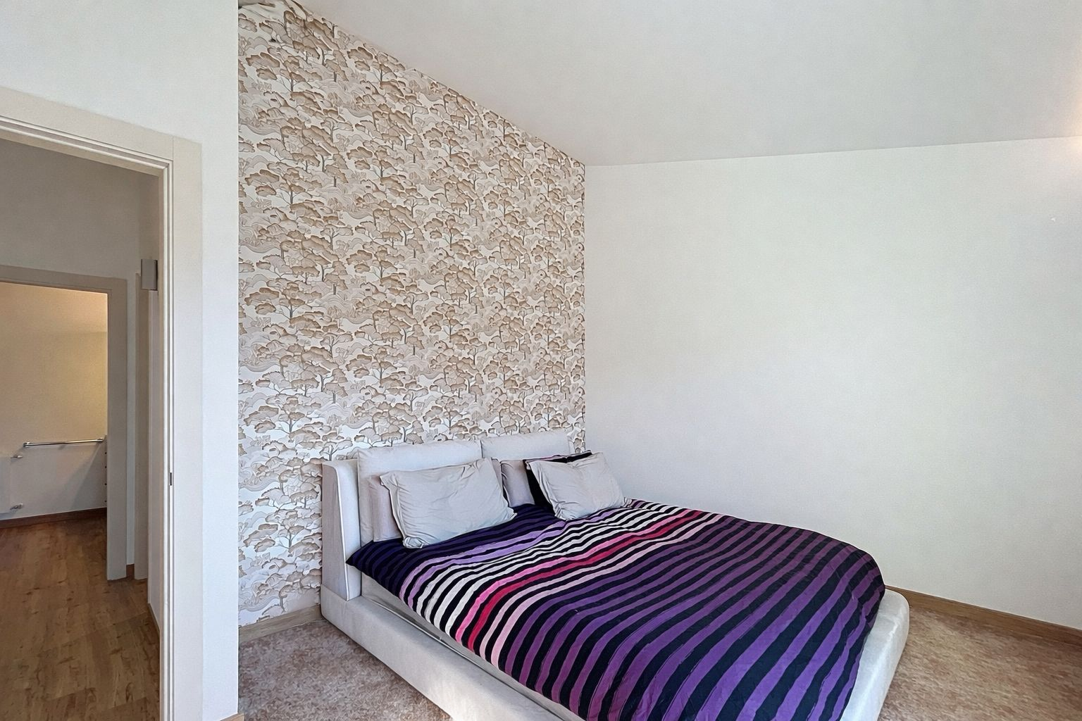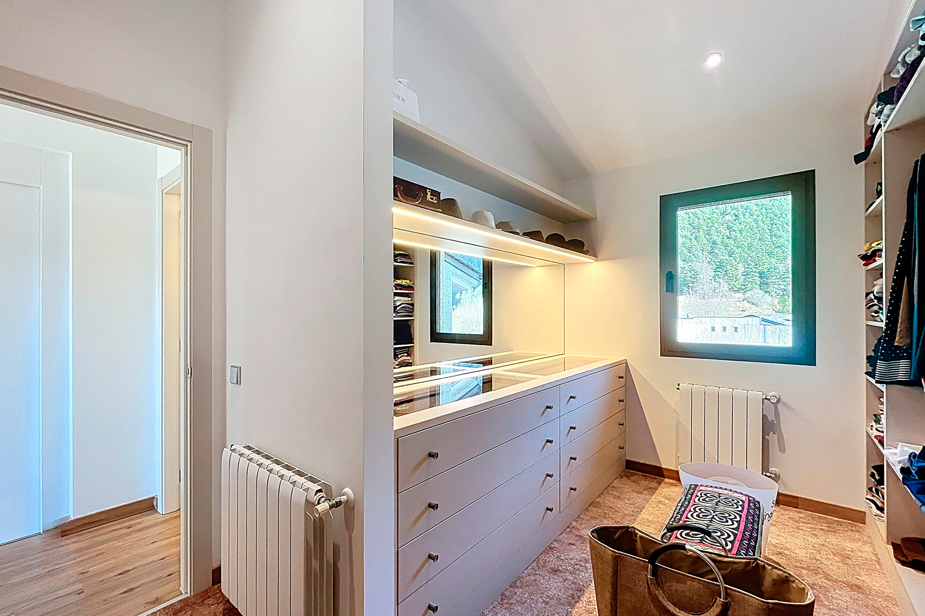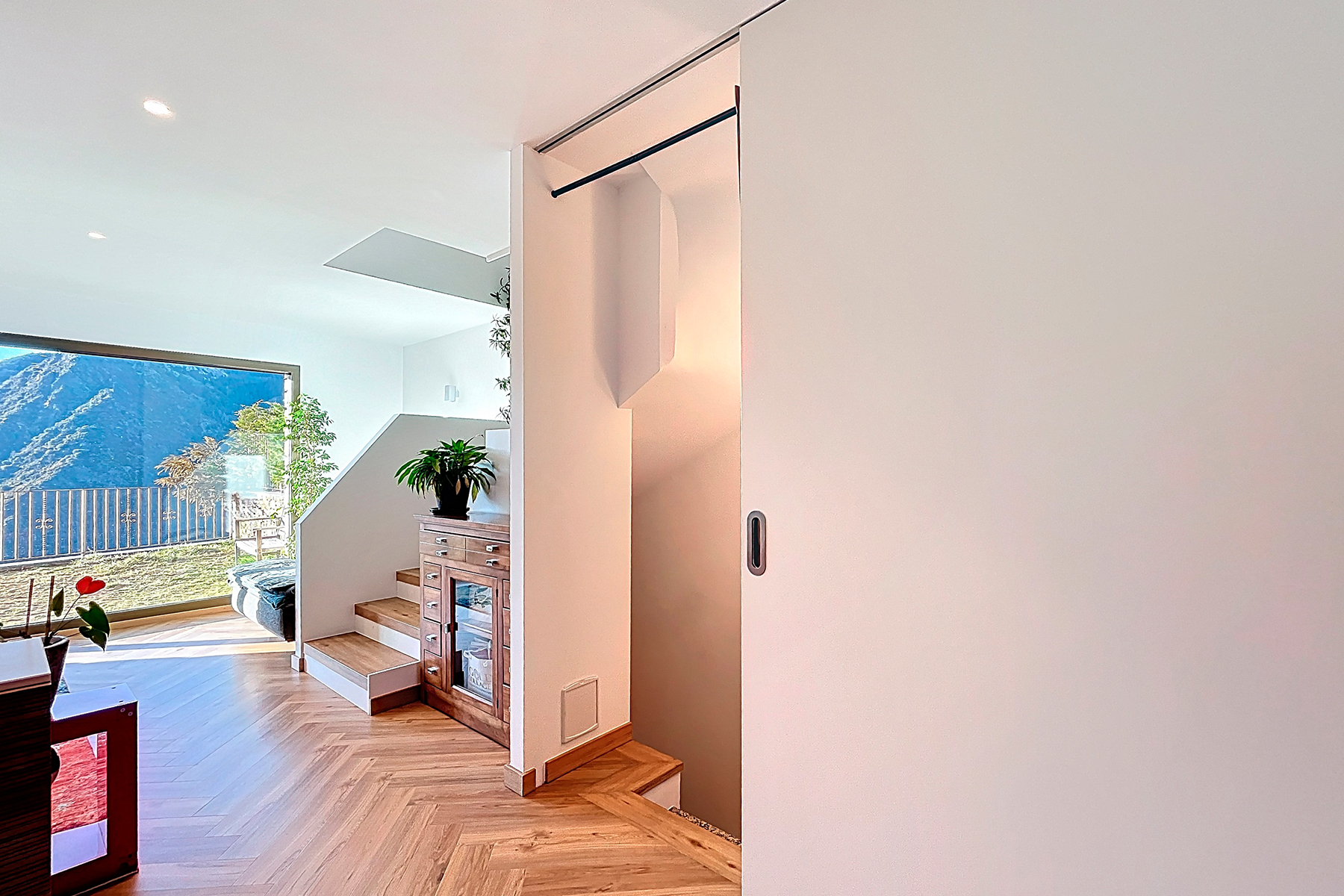 Этаж под крышей включает главную спальню, полностью оборудованную ванную комнату и удобную гардеробную. Из комнаты открывается выход на террасу с западной ориентацией, идеальную для наслаждения солнечными лучами вечером и приятного пребывания на открытом воздухе.