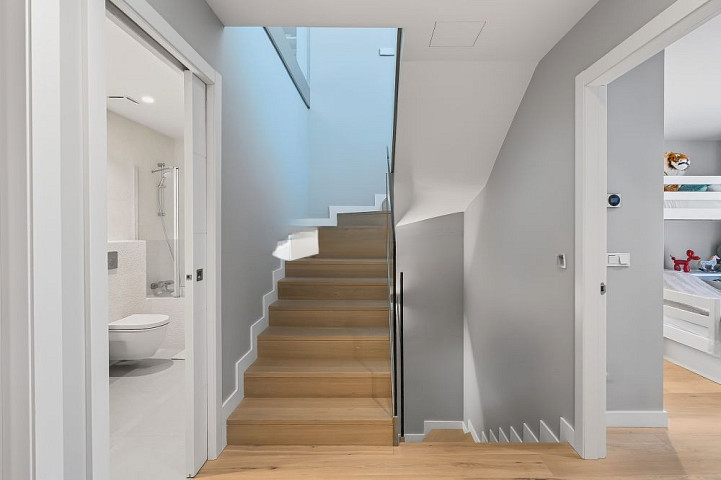 На верхнем этаже дом предлагает особенно привлекательное и универсальное пространство. С одной стороны, просторная многофункциональная комната, в настоящее время используемая как игровая, с выходом на великолепную террасу площадью около 25 м², идеально подходящую для наслаждения видами и спокойствием. С другой стороны, люксовая спальня с полной ванной и гардеробной, имеющая также собственную частную террасу площадью около 10 м².