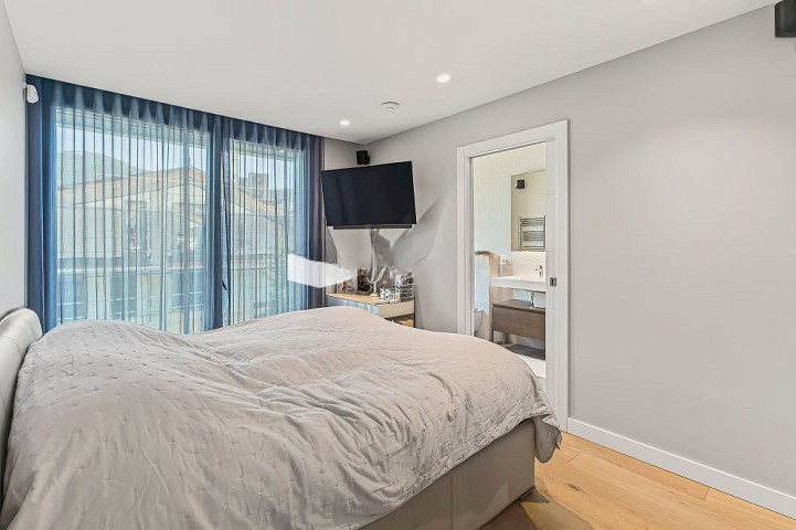 На первом этаже в основном расположена зона отдыха. Здесь находятся три двухместных спальни, все с встроенными шкафами и большими окнами, обеспечивающими отличный приток естественного света. Две из них делят ванную комнату, а третья является люксом с собственной ванной комнатой и гардеробной.