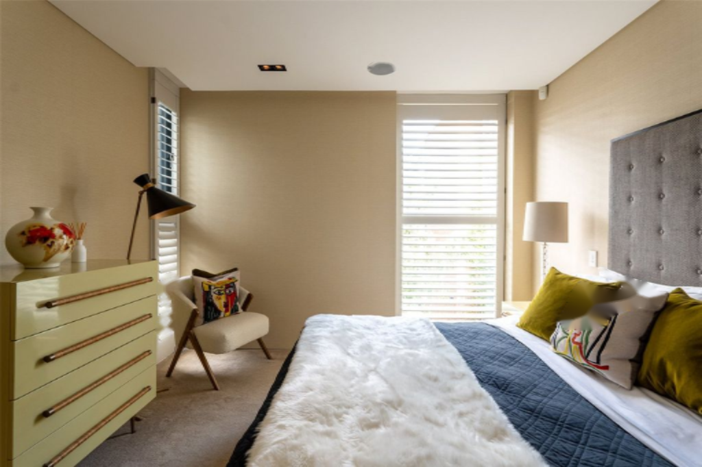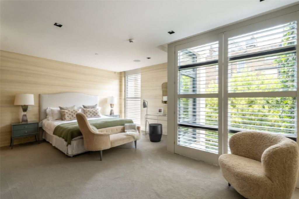 На втором этаже две спальни, каждая с собственной ванной, и одна из них с гардеробной. Главная спальня занимает весь третий этаж с большой ванной комнатой, оборудованной ванной и душем, а также значительным объемом мест для хранения. С этим помещением соприкасаются раздвижные французские двери, наполняющие его послеобеденным светом.