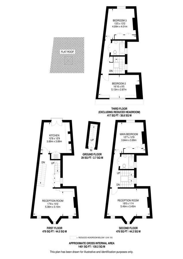 3 beds, 2 baths, 2 receptions, 1,401 sq. ft;